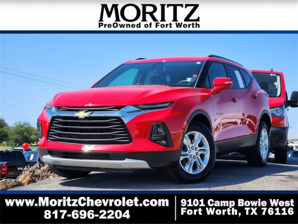 Certified. Red Hot 2022 Chevrolet Blazer LT FWD 9-Speed Automatic with Overdrive 2.0L Turbocharged Bluetooth, Backup Camera, The Moritz Promise LIMITED LIFETIME POWERTRAIN PROTECTION PLAN See dealer for details, 6-Speaker Audio System Feature, Alloy wheels, Apple CarPlay/Android Auto, Automatic temperature control, Black Roof Rails, Brake assist, Convenience & Driver Confidence Package, Electronic Stability Control, Exterior Parking Camera Rear, Four wheel independent suspension, Front anti-roll bar, Front Bucket Seats, Fully automatic headlights, Heated Driver & Front Passenger Seats, High-Intensity Discharge Headlights, Illuminated entry, Inside Rear-View Auto-Dimming Mirror, Lane Change Alert w/Side Blind Zone Alert, Outside Heated Power-Adjustable Body-Color Mirrors, Power driver seat, Preferred Equipment Group 2LT, Premium Cloth Seat Trim, Radio: Chevrolet Infotainment 3 System, Rear anti-roll bar, Rear Cross Traffic Alert, Rear Park Assist w/Audible Warning, Rear Power Programmable Liftgate, Remote keyless entry, Remote Start, Ride & Handling Suspension, Security system, SiriusXM Radio, Speed-sensing steering, Spoiler, Steering wheel mounted audio controls, Telescoping steering wheel, Traction control, Universal Home Remote.