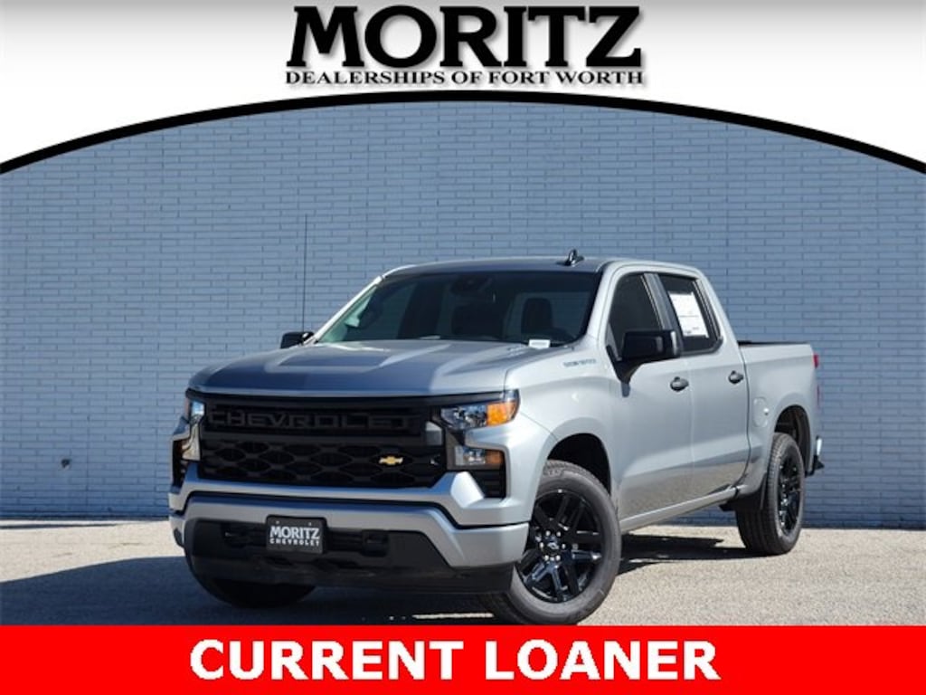 Sterling Gray Metallic 2025 Chevrolet Silverado 1500 Custom DRAC RWD 8-Speed Automatic 2.7L I4 Turbocharged DOHC 16V LEV3-SULEV30 310hp Bluetooth, Backup Camera, 8-Speed Automatic, Black Cloth, 10-Way Power Driver Seat w/Lumbar, 120-Volt Bed Mounted Power Outlet, 120-Volt Interior Power Outlet, 3.5 Monochromatic Display Driver Info Center, 6-Speaker Audio System, AM/FM radio: SiriusXM, Bluetooth® For Phone, Color-Keyed Carpeting Floor Covering, Custom Convenience Package, Custom Value Package, Deep-Tinted Glass, Dual Rear USB Ports (Charge Only), Electric Rear-Window Defogger, Electronic Cruise Control, EZ Lift Power Lock & Release Tailgate, Front Frame-Mounted Black Recovery Hooks, Front Rubberized Vinyl Floor Mats, HD Rear Vision Camera, High Capacity Suspension Package, Hitch Guidance, LED Cargo Area Lighting, Manual Tilt Wheel Steering Column, OnStar Services Capable, Power Front Windows w/Driver Express Up/Down, Power Front Windows w/Passenger Express Down, Power Rear Windows w/Express Down, Preferred Equipment Group 1CX, Rear 60/40 Folding Bench Seat (Folds Up), Rear Rubberized-Vinyl Floor Mats, Remote Keyless Entry, Remote Vehicle Starter System, SiriusXM Trial Subscription, Standard Tailgate, Teen Driver, Theft Deterrent System (Unauthorized Entry), Tire Pressure Monitoring System, Trailering Package, Wheels: 20 x 9 High Gloss Black Painted Alum, Wi-Fi Hot Spot Capable. Prices do not include tax, title and license fees.$1000 - Bonus Cash. Exp. 11/03/2025 $3000 - Customer Cash. Exp. 11/03/2025
