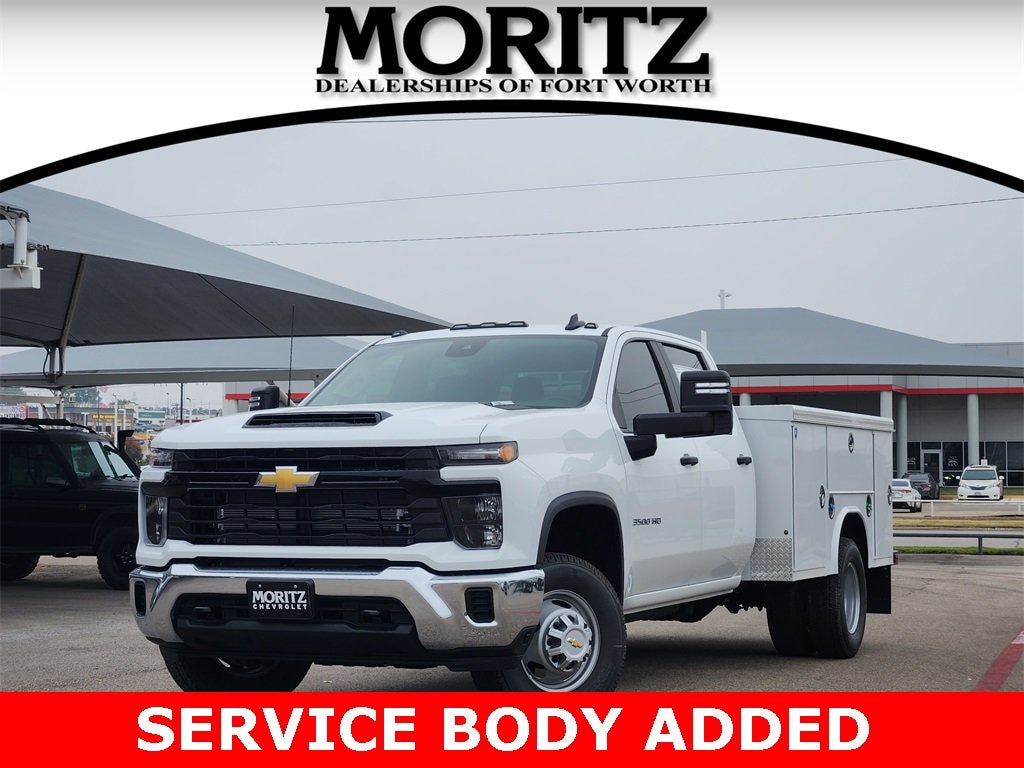Dealer Adds ($12,995) consist of 40''H Royal Body w/Open Top Lids 108''L, Headache Rack 40'', Class 5 Receiver Hitch w/trailer Connect and GM Camera. Summit White 2025 Chevrolet Silverado 3500HD Work Truck 4WD 10-Speed Automatic Duramax 6.6L V8 Turbodiesel Bluetooth, Backup Camera, 10-Speed Automatic, 4WD, Black Cloth, 120-Volt (400 Watts) Interior Power Outlet, 170 Amp Alternator, 18 Painted Steel Wheels, 2-Speed Electronic Shift Transfer Case, 3.5 Diagonal Monochromatic Display DIC, 4-Way Manual Driver Seat Adjuster, 4-Way Manual Passenger Seat Adjuster, 6-Speaker Audio System Feature, AM/FM radio, Black Front Bumper, Black Mirror Caps, Bluetooth® For Phone, Compass Located In Instrument Cluster, Deep-Tinted Glass, Driver door bin, Dual Rear USB Ports (Charge Only), Electric Rear-Window Defogger, Front Chrome Bumper, Front Grille Bar w/Black Mesh Inserts, Front License Plate Kit, Front reading lights, High-Visibility Molded in Black Outside Mirrors, Manual Tilt-Wheel Steering Column, Power Rear Windows w/Express Down, Power steering, Power windows, Preferred Equipment Group 1WT, Radio: Chevrolet Infotainment 3 System, Rear 60/40 Folding Bench Seat (Folds Up), Remote keyless entry, Rubberized-Vinyl Floor Covering, Solar Absorbing Tinted Glass, Steering Wheel Mounted Electronic Cruise Control, Suspension Package, WT Convenience Package. Prices do not include tax, title and license fees.$1000 - Customer Cash. Exp. 02/02/2026