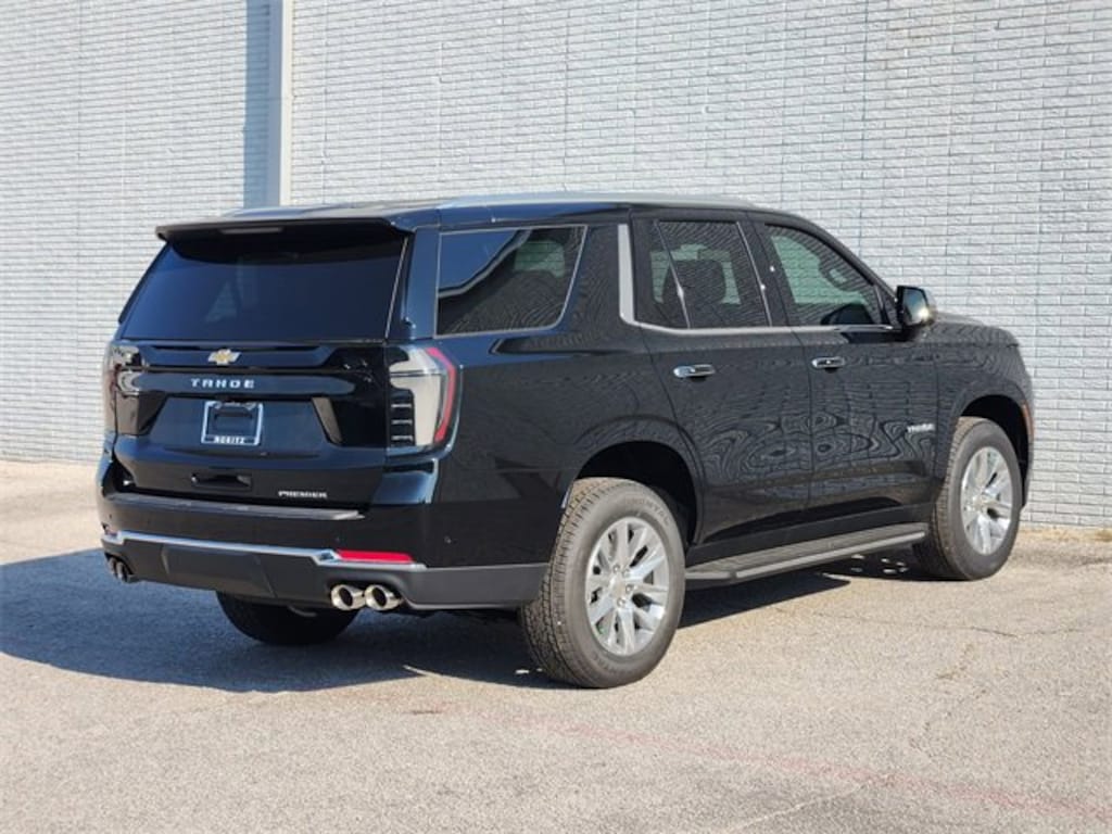 Black 2025 Chevrolet Tahoe Premier 4WD 10-Speed Automatic with Overdrive EcoTec3 5.3L V8 Bluetooth, Backup Camera, 4WD, Black Leather, 10 Speakers, 1st & 2nd Row Color-Keyed Carpeted Floor Mats, 2-Speed Active Electronic AutoTrac Transfer Case, 20 x 9 Polished Aluminum Wheels, 3-Spoke Wrapped Steering Wheel, 3rd Row 60/40 Power-Folding Split-Bench Seat, 3rd row seats: split-bench, 4-Way Power Driver Lumbar Seat Adjuster, 4-Way Power Front Passenger Lumbar Seat Adjuster, 8-Way Power Driver Seat Adjuster, 8-Way Power Front Passenger Seat Adjuster, Advanced Trailering Package, Auto-Dimming Inside Rear-View Mirror, Blind Zone Steering Assist w/Trailering, Bose 10-Speaker Centerpoint Surround Audio Sys Ft, Bright Front & Rear Door Sill Plates, Chrome Door Handles w/Body-Color Strip, Chrome Mirror Caps, Color-Keyed Carpeting Floor Covering, Driver & Front Passenger Heated & Ventilated Seats, Dual Exhaust System, Dual-Pane Power Panoramic Sunroof, Floor Console, Front Bucket Seats, Front Center Armrest, Front LED Fog Lamps, Front Pedestrian & Bicyclist Braking, Frontal Driver & Outboard Passenger Airbags, Heated 2nd Row Outboard Seats, Heated Driver & Front Passenger Seats, Heated front seats, Heated rear seats, Heated Steering Wheel, Hill Descent Control, Hitch View w/Pan/Zoom Image Adjustment, Integrated Trailer Brake Controller, LED Headlamps w/LED Daytime Running Lamps, LED Tail Lamps, License Plate Front Mounting Package, Max Trailering Package, Memory Settings, Navigation system: Google built-in compatibility (select service plan required, terms and limitations apply), Outside Heated Power-Adjustable Mirrors, Perforated Leather Seat Trim, Power driver seat, Power passenger seat, Power Release 2nd Row Bucket Seats, Power steering, Power Tilt & Telescopic Steering Column, Power windows, Preferred Equipment Group 1LZ, Premium audio system: Chevrolet Infotainment 3 Premium, Radio data system, Radio: 17.7 Diagonal Advanced Color LCD Display, Rear Power Liftgate, Remote keyless entry, Remote Start, SiriusXM w/360L Trial Subscription, Smart Trailer Integration Indicator, Split folding rear seat, Sun & Tow Package, Telescoping steering wheel, Tilt steering wheel, Turn signal indicator mirrors, Universal Home Remote, Ventilated front seats, Wireless Phone Charging.