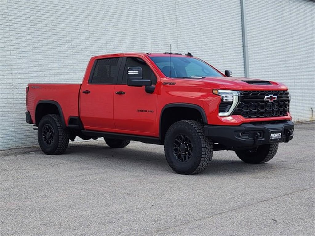Red 2026 Chevrolet Silverado 2500HD ZR2 4WD 10-Speed Automatic Duramax 6.6L V8 Turbodiesel Bluetooth, Backup Camera, 10-Speed Automatic, 4WD, Jet Black/Graystone Leather, 10-Way Power Driver Seat Adjuster w/Lumbar, 10-Way Power Passenger Seat Adjuster w/Lumbar, 120-Volt Bed Mounted Power Outlet, 120-Volt Interior Power Outlet, 15 Diagonal Multicolor Head-Up Display, 7 Speakers, Adaptive Cruise Control, AM/FM radio: SiriusXM with 360L, Bluetooth® For Phone, BOSE Premium 7-Speaker Sound System, Driver Memory, Front Bucket Seats, Front Center Armrest, Heads-Up Display, Heated 2nd Row Outboard Seats, Heated Driver & Front Outboard Passenger Seating, Heated front seats, Heated rear seats, Heated steering wheel, Memory seat, Perforated Leather Seat Trim, Power driver seat, Power Front Windows w/Driver Express Up/Down, Power Front Windows w/Passenger Express Up/Down, Power passenger seat, Power Rear Windows w/Express Down, Power steering, Power windows, Premium audio system: Chevrolet Infotainment 3 Premium, Push Button Start, Radio: Chevrolet Infotainment 3 Premium System, Rear Camera Mirror, Remote keyless entry, Remote Vehicle Starter System, SiriusXM w/360L Trial Subscription, Split folding rear seat, Steering Wheel Audio Controls, Steering wheel mounted audio controls, Technology Package, Universal Home Remote, Up-Level Rear Seat w/Storage Package, Ventilated Driver & Front Passenger Seats, Ventilated front seats, Wheels: 18 Gloss Black w/Etched ZR2 Logo, ZR2 Suspension Package.