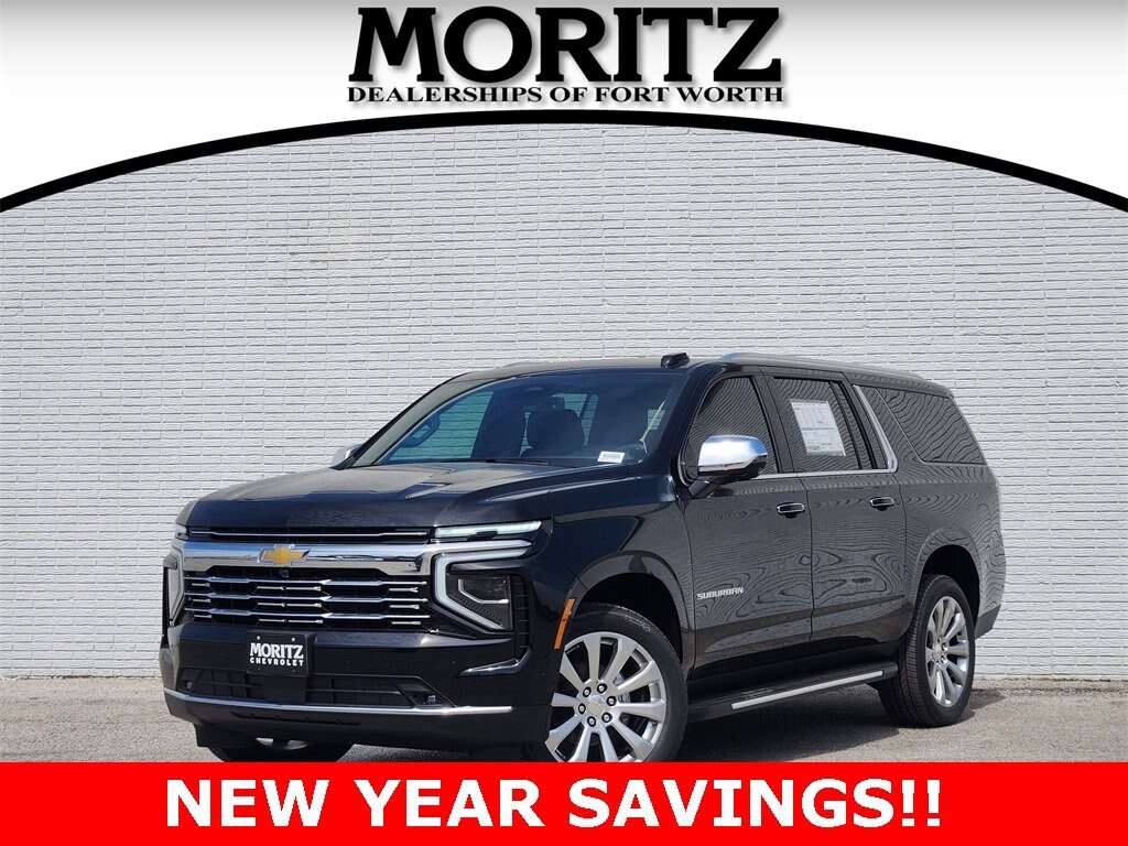 Black 2026 Chevrolet Suburban Premier 4WD 10-Speed Automatic with Overdrive EcoTec3 5.3L V8 Bluetooth, Backup Camera, 10 Speakers, 20 x 9 Polished Aluminum Wheels, 3rd Row 60/40 Power-Folding Split-Bench, 3rd row seats: split-bench, 4-Way Power Driver Lumbar Seat Adjuster, 4-Way Power Front Passenger Lumbar Seat Adjuster, 8-Way Power Driver Seat Adjuster, 8-Way Power Front Passenger Seat Adjuster, AM/FM radio: SiriusXM with 360L, Front Bucket Seats, Front Center Armrest, Heated 2nd Row Outboard Seats, Heated front seats, Heated rear seats, Memory seat, Memory Settings, Navigation system: Google built-in compatibility (select service plan required, terms and limitations apply), Passenger vanity mirror, Perforated Leather Seating Surfaces, Power driver seat, Power passenger seat, Power Release 2nd Row Bucket Seats, Power steering, Power windows, Power-Sliding Center Floor Console, Radio data system, Radio: 17.7 Diagonal Advanced Color LCD Display, Rear Power Liftgate, Rear reading lights, Remote keyless entry, Split folding rear seat, Steering wheel memory, Steering wheel mounted audio controls, Telescoping steering wheel, Tilt steering wheel, Turn signal indicator mirrors, Universal Home Remote, Ventilated front seats, Wireless Apple CarPlay/Wireless Android Auto.