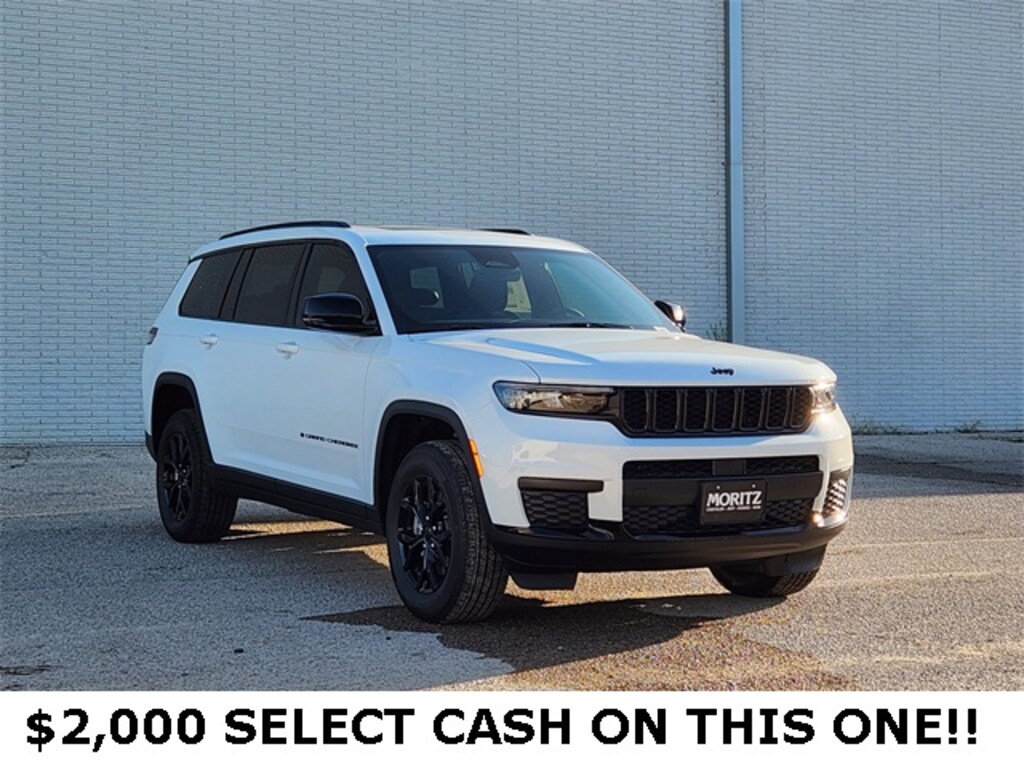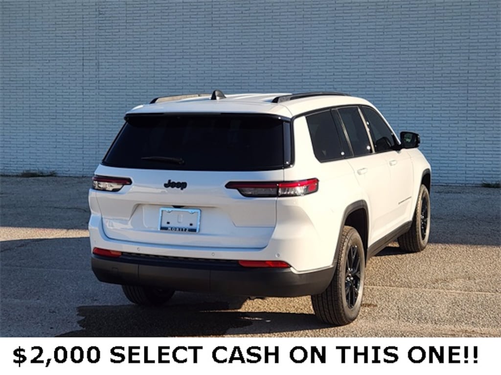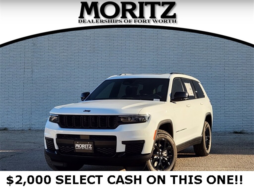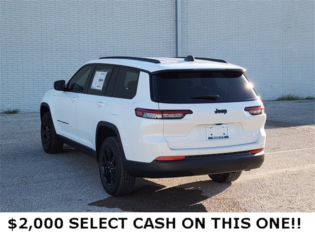 Bright White Clearcoat 2025 Jeep Grand Cherokee L Altitude X RWD 8-Speed Automatic 3.6L V6 24V VVT Bluetooth, Backup Camera, 115V Auxiliary Power Outlet, 3rd Row Charge-Only USB Ports, 4-Wheel Disc Brakes, ABS brakes, Air Conditioning, Altitude X, AM/FM radio: SiriusXM, Anti-whiplash front head restraints, Automatic temperature control, Black Headliner, Brake assist, Capri Leatherette/Suede Seats, Cloth Seats, Delete Laredo Badge, Driver door bin, Driver vanity mirror, Dual front impact airbags, Dual front side impact airbags, Electronic Stability Control, Emergency communication system, Front anti-roll bar, Front Bucket Seats, Front Center Armrest w/Storage, Front License Plate Bracket, Front reading lights, Gloss Black Exterior Accents, Heated Front Seats, Heated Steering Wheel, Knee airbag, Low tire pressure warning, Normal Duty Suspension, Occupant sensing airbag, Outside temperature display, Overhead airbag, Overhead console, Panic alarm, ParkView Rear Back-Up Camera, Passenger door bin, Power door mirrors, Power driver seat, Power Liftgate, Power Sunroof, Power windows, Quick Order Package 23M Altitude X, Radio data system, Radio: Uconnect 5 w/8.4" Display, Rain Sensitive Windshield Wipers, Rear air conditioning, Rear anti-roll bar, Rear reading lights, Reclining 3rd row seat, Remote keyless entry, Remote Start System, Security system, Selectable Tire Fill Alert, Split folding rear seat, Spoiler, Steering wheel mounted audio controls, Tachometer, Telescoping steering wheel, Traction control, Trip computer, Voltmeter, Wheels: 18" x 8.0" Fully Painted Aluminum, Wheels: 18" x 8.0" Fully Painted Aluminum 1, Wireless Charging Pad. Prices do not include tax, title and license fees.$2000 - 2025 National Retail Bonus Cash . Exp. 11/03/2025 $500 - 2025 National Jeep Monopoly Money Bonus Cash . Exp. 11/03/2025