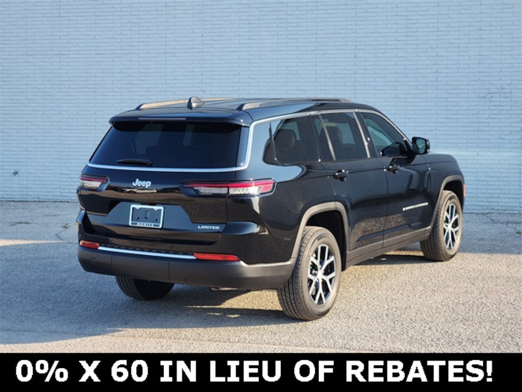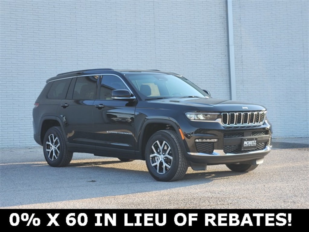 Diamond Black Crystal Pearlcoat 2025 Jeep Grand Cherokee L Limited RWD 8-Speed Automatic 3.6L V6 24V VVT Bluetooth, Backup Camera, 3.45 Rear Axle Ratio, 3rd row seats: split-bench, Automatic temperature control, Dual front impact airbags, Dual front side impact airbags, Four wheel independent suspension, Front anti-roll bar, Front fog lights, Heated door mirrors, Heated front seats, Heated rear seats, Illuminated entry, Knee airbag, Memory seat, Navigation System, Overhead airbag, Overhead console, ParkView Rear Back-Up Camera, Power driver seat, Power Liftgate, Power steering, Power windows, Quick Order Package 22E, Radio: Uconnect 5 Nav w/10.1" Display, Rear window defroster, Reclining 3rd row seat, Remote keyless entry, Security system, Speed control, Split folding rear seat, Steering wheel mounted audio controls, Telescoping steering wheel, Traction control, Turn signal indicator mirrors, Variably intermittent wipers, Wheels: 18" x 8.0" Polished/Painted Aluminum. Prices do not include tax, title and license fees.$2000 - 2025 National Retail Bonus Cash . Exp. 11/03/2025 $500 - 2025 National Jeep Monopoly Money Bonus Cash . Exp. 11/03/2025