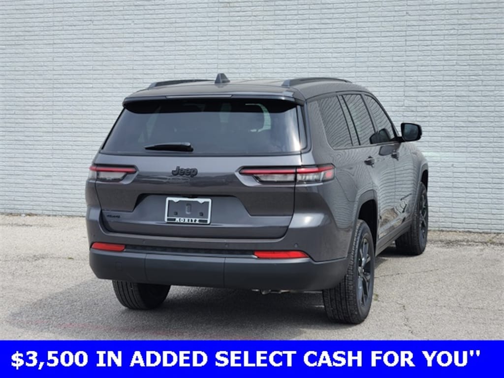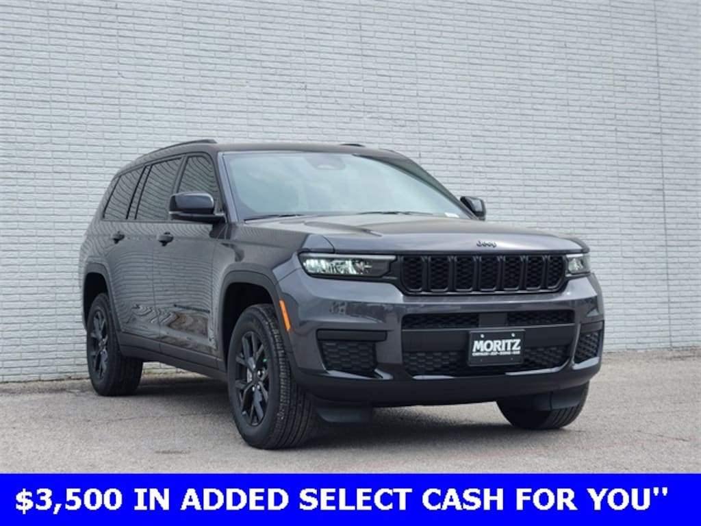 Baltic Gray Metallic Clearcoat 2025 Jeep Grand Cherokee L Altitude X 4WD 8-Speed Automatic 3.6L V6 24V VVT Bluetooth, Backup Camera, 115V Auxiliary Power Outlet, 3.45 Rear Axle Ratio, 3rd Row Charge-Only USB Ports, 4-Wheel Disc Brakes, ABS brakes, Air Conditioning, Alloy wheels, Altitude X, AM/FM radio: SiriusXM, Black Headliner, Capri Leatherette/Suede Seats, Cloth Seats, Compass, Delete Laredo Badge, Driver door bin, Driver vanity mirror, Dual front impact airbags, Electronic Stability Control, Emergency communication system, Four wheel independent suspension, Front Center Armrest w/Storage, Front License Plate Bracket, Front reading lights, Fully automatic headlights, Gloss Black Exterior Accents, Heated door mirrors, Heated Front Seats, Heated Steering Wheel, Illuminated entry, Knee airbag, Manual Fold Seatbacks, Model Year Tracking, Occupant sensing airbag, Overhead console, Panic alarm, ParkView Rear Back-Up Camera, Passenger door bin, Passenger vanity mirror, Power door mirrors, Power driver seat, Power Liftgate, Power steering, Power Sunroof, Quick Order Package 23M Altitude X, Radio data system, Rain Sensitive Windshield Wipers, Rear air conditioning, Rear anti-roll bar, Rear reading lights, Rear window defroster, Rear window wiper, Reclining 3rd row seat, Remote keyless entry, Remote Start System, Security system, Selectable Tire Fill Alert, Speed control, Split folding rear seat, Spoiler, Steering wheel mounted audio controls, Tachometer, Telescoping steering wheel, Tilt steering wheel, Traction control, Trip computer, Variably intermittent wipers, Voltmeter, Wheels: 18" x 8.0" Fully Painted Aluminum 1, Wireless Charging Pad. Prices do not include tax, title and license fees.$1000 - 2025 Central BC Select Inventory Bonus Cash. Exp. 01/05/2026 $2000 - 2025 National Holiday Select Inventory Bonus Cash. Exp. 01/05/2026 $2500 - 2025 National Retail Bonus Cash . Exp. 01/05/2026