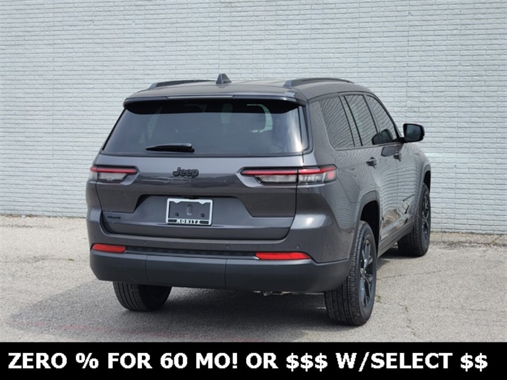 Baltic Gray Metallic Clearcoat 2025 Jeep Grand Cherokee L Altitude X 4WD 8-Speed Automatic 3.6L V6 24V VVT Bluetooth, Backup Camera, 115V Auxiliary Power Outlet, 3.45 Rear Axle Ratio, 3rd Row Charge-Only USB Ports, 4-Wheel Disc Brakes, ABS brakes, Air Conditioning, Alloy wheels, Altitude X, AM/FM radio: SiriusXM, Black Headliner, Capri Leatherette/Suede Seats, Cloth Seats, Compass, Delete Laredo Badge, Driver door bin, Driver vanity mirror, Dual front impact airbags, Electronic Stability Control, Emergency communication system, Four wheel independent suspension, Front Center Armrest w/Storage, Front License Plate Bracket, Front reading lights, Fully automatic headlights, Gloss Black Exterior Accents, Heated door mirrors, Heated Front Seats, Heated Steering Wheel, Illuminated entry, Knee airbag, Manual Fold Seatbacks, Model Year Tracking, Occupant sensing airbag, Overhead console, Panic alarm, ParkView Rear Back-Up Camera, Passenger door bin, Passenger vanity mirror, Power door mirrors, Power driver seat, Power Liftgate, Power steering, Power Sunroof, Quick Order Package 23M Altitude X, Radio data system, Radio: Uconnect 5 w/8.4" Display, Rain Sensitive Windshield Wipers, Rear air conditioning, Rear anti-roll bar, Rear reading lights, Rear window defroster, Rear window wiper, Reclining 3rd row seat, Remote keyless entry, Remote Start System, Security system, Selectable Tire Fill Alert, Speed control, Split folding rear seat, Spoiler, Steering wheel mounted audio controls, Tachometer, Telescoping steering wheel, Tilt steering wheel, Traction control, Trip computer, Variably intermittent wipers, Voltmeter, Wheels: 18" x 8.0" Fully Painted Aluminum 1, Wireless Charging Pad. Prices do not include tax, title and license fees.$2000 - 2025 National Retail Bonus Cash . Exp. 11/03/2025 $500 - 2025 National Jeep Monopoly Money Bonus Cash . Exp. 11/03/2025