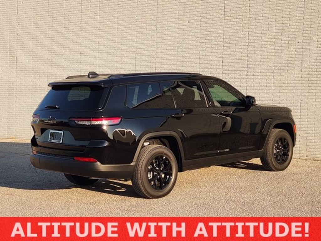 Diamond Black Crystal Pearlcoat 2025 Jeep Grand Cherokee L Altitude X 4WD 8-Speed Automatic 3.6L V6 24V VVT Bluetooth, Backup Camera, 115V Auxiliary Power Outlet, 3.45 Rear Axle Ratio, 3rd Row Charge-Only USB Ports, 4-Wheel Disc Brakes, Air Conditioning, Alloy wheels, Altitude X, Anti-whiplash front head restraints, Black Headliner, Bumpers: body-color, Capri Leatherette/Suede Seats, Cloth Seats, Compass, Delay-off headlights, Delete Laredo Badge, Driver door bin, Driver vanity mirror, Dual front side impact airbags, Front anti-roll bar, Front Bucket Seats, Front Center Armrest w/Storage, Front License Plate Bracket, Front reading lights, Fully automatic headlights, Gloss Black Exterior Accents, Heated door mirrors, Heated Front Seats, Heated Steering Wheel, Illuminated entry, Low tire pressure warning, Model Year Tracking, Overhead airbag, Overhead console, Panic alarm, ParkView Rear Back-Up Camera, Passenger door bin, Passenger vanity mirror, Power door mirrors, Power driver seat, Power Liftgate, Power Sunroof, Power windows, Quick Order Package 23M Altitude X, Rain Sensitive Windshield Wipers, Rear air conditioning, Rear reading lights, Rear window defroster, Rear window wiper, Reclining 3rd row seat, Remote keyless entry, Remote Start System, Security system, Selectable Tire Fill Alert, Speed control, Speed-Sensitive Wipers, Split folding rear seat, Spoiler, Steering wheel mounted audio controls, Tachometer, Telescoping steering wheel, Tilt steering wheel, Traction control, Variably intermittent wipers, Voltmeter, Wheels: 18" x 8.0" Fully Painted Aluminum 1, Wireless Charging Pad. Prices do not include tax, title and license fees.$1000 - 2025 Southwest BC SFS Bonus Cash . Exp. 04/30/2026 $2000 - 2025 National Bonus Cash . Exp. 04/30/2026 $2500 - 2025 National Retail Bonus Cash . Exp. 04/30/2026