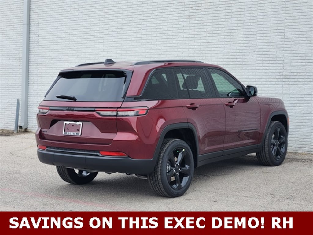 Velvet Red Pearlcoat 2025 Jeep Grand Cherokee Altitude X DEMO 4WD 8-Speed Automatic 3.6L V6 24V VVT Bluetooth, Backup Camera, 4WD, 115V Auxiliary Power Outlet, 4-Wheel Disc Brakes, ABS brakes, Air Conditioning, Alloy wheels, Altitude X, AM/FM radio: SiriusXM, Anti-whiplash front head restraints, Automatic temperature control, Black Headliner, Capri Leatherette/Suede Seats, Cloth Seats, Delay-off headlights, Delete Laredo Badge, Driver door bin, Driver vanity mirror, Dual front impact airbags, Dual front side impact airbags, Electronic Stability Control, Emergency communication system, Four wheel independent suspension, Front anti-roll bar, Front Bucket Seats, Front dual zone A/C, Front reading lights, Fully automatic headlights, Gloss Black Exterior Accents, Heated door mirrors, Heated Front Seats, Heated Steering Wheel, Illuminated entry, Knee airbag, Low tire pressure warning, Model Year Tracking, Normal Duty Suspension, Occupant sensing airbag, Overhead airbag, Overhead console, Panic alarm, ParkView Rear Back-Up Camera, Passenger vanity mirror, Power Liftgate, Power steering, Power Sunroof, Power windows, Quick Order Package 23M Altitude X, Radio data system, Rain Sensitive Windshield Wipers, Rear anti-roll bar, Rear reading lights, Rear window defroster, Remote keyless entry, Remote Start System, Security system, Selectable Tire Fill Alert, Speed-Sensitive Wipers, Split folding rear seat, Steering wheel mounted audio controls, Tachometer, Telescoping steering wheel, Tilt steering wheel, Traction control, Wheels: 18" x 8" Fully Painted Aluminum 1, Wireless Charging Pad. Prices do not include tax, title and license fees.$2250 - 2025 National Retail Bonus Cash . Exp. 01/05/2026