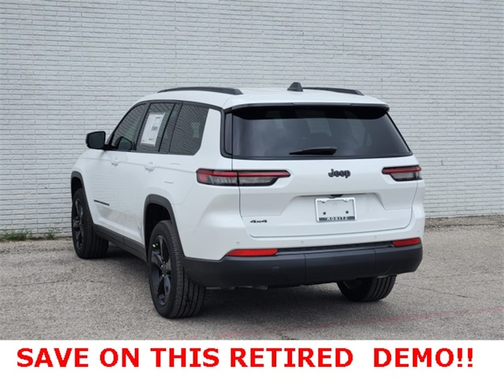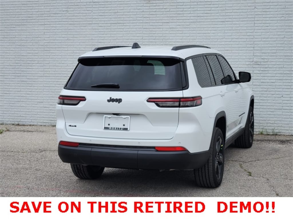 Bright White Clearcoat 2025 Jeep Grand Cherokee L Altitude X DEMO 4WD 8-Speed Automatic 3.6L V6 24V VVT Bluetooth, Backup Camera, 115V Auxiliary Power Outlet, 180 Amp Alternator, 3rd Row Charge-Only USB Ports, 4-Wheel Disc Brakes, 6 Speakers, 7 & 4 Pin Wiring Harness, ABS brakes, Air Conditioning, Alloy wheels, Altitude X, AM/FM radio: SiriusXM, Anti-whiplash front head restraints, Automatic Headlamp Leveling System, Automatic temperature control, Black Headliner, Brake assist, Bumpers: body-color, Capri Leatherette/Suede Seats, Class IV Receiver Hitch, Cloth Seats, Delay-off headlights, Delete Laredo Badge, Driver door bin, Dual Exhaust Tips, Dual front side impact airbags, Electronic Stability Control, Four wheel independent suspension, Front anti-roll bar, Front dual zone A/C, Front License Plate Bracket, Front reading lights, Fully automatic headlights, Gloss Black Exterior Accents, Heated door mirrors, Heated Front Seats, Heated Steering Wheel, Heavy-Duty Engine Cooling, Low tire pressure warning, Manual Fold Seatbacks, Model Year Tracking, Normal Duty Suspension, Occupant sensing airbag, Outside temperature display, Overhead airbag, Overhead console, ParkView Rear Back-Up Camera, Power door mirrors, Power driver seat, Power Liftgate, Power steering, Power Sunroof, Power windows, Quick Order Package 23M Altitude X, Radio: Uconnect 5 w/8.4" Display, Rain Sensitive Windshield Wipers, Rear air conditioning, Rear anti-roll bar, Rear Load Leveling Suspension, Rear reading lights, Rear window defroster, Rear window wiper, Remote Start System, Security system, Selectable Tire Fill Alert, Speed control, Split folding rear seat, Spoiler, Steering wheel mounted audio controls, Tachometer, Telescoping steering wheel, Traction control, Trailer Hitch Zoom, Trailer Tow Package, Variably intermittent wipers, Voltmeter, Wheels: 18" x 8.0" Fully Painted Aluminum 1, Wireless Charging Pad. Prices do not include tax, title and license fees.$2000 - 2025 National Retail Bonus Cash . Exp. 11/03/2025 $500 - 2025 National Jeep Monopoly Money Bonus Cash . Exp. 11/03/2025