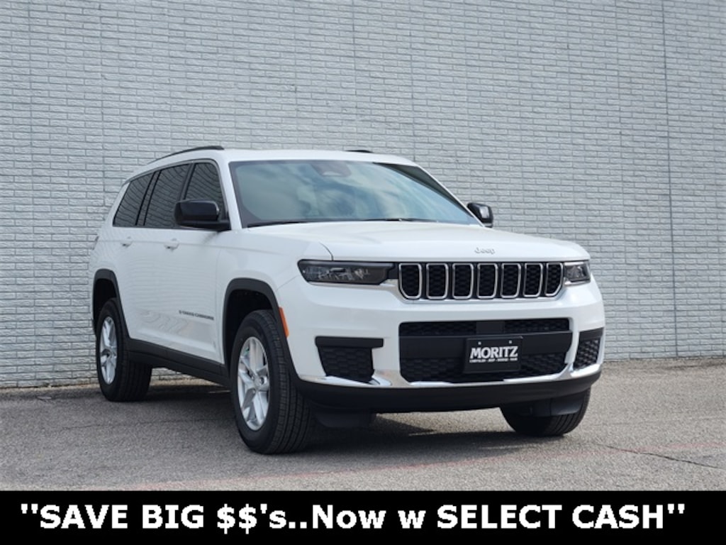 Bright White Clearcoat 2025 Jeep Grand Cherokee L Laredo RWD 8-Speed Automatic 3.6L V6 24V VVT Bluetooth, Backup Camera, 3.45 Rear Axle Ratio, 3rd row seats: split-bench, ABS brakes, Air Conditioning, Alloy wheels, Anti-whiplash front head restraints, Automatic temperature control, Brake assist, Bumpers: body-color, Cloth Seats, Delay-off headlights, Driver door bin, Driver vanity mirror, Dual front impact airbags, Dual front side impact airbags, Electronic Stability Control, Emergency communication system, Four wheel independent suspension, Front anti-roll bar, Front Bucket Seats, Front Center Armrest w/Storage, Front dual zone A/C, Front License Plate Bracket, Front reading lights, Fully automatic headlights, Heated door mirrors, Illuminated entry, Knee airbag, Laredo X, Low tire pressure warning, Manual Fold Seatbacks, Model Year Tracking, Normal Duty Suspension, Occupant sensing airbag, Overhead airbag, Overhead console, Panic alarm, ParkView Rear Back-Up Camera, Passenger door bin, Passenger vanity mirror, Power door mirrors, Power driver seat, Power steering, Power Sunroof, Power windows, Quick Order Package 23D Laredo X, Radio data system, Radio: Uconnect 5 w/8.4" Display, Rear air conditioning, Rear anti-roll bar, Rear reading lights, Rear window defroster, Rear window wiper, Reclining 3rd row seat, Remote keyless entry, Security system, Speed control, Speed-Sensitive Wipers, Split folding rear seat, Spoiler, Steering wheel mounted audio controls, Tachometer, Telescoping steering wheel, Tilt steering wheel, Traction control, Trip computer, Variably intermittent wipers, Voltmeter. Prices do not include tax, title and license fees.$2500 - 2025 National Retail Bonus Cash . Exp. 01/05/2026