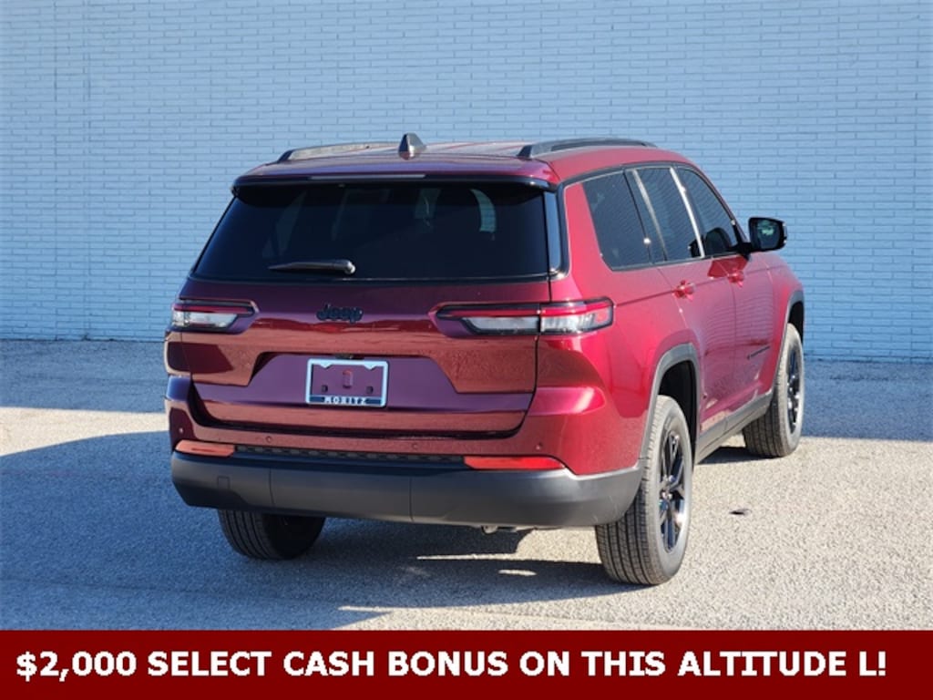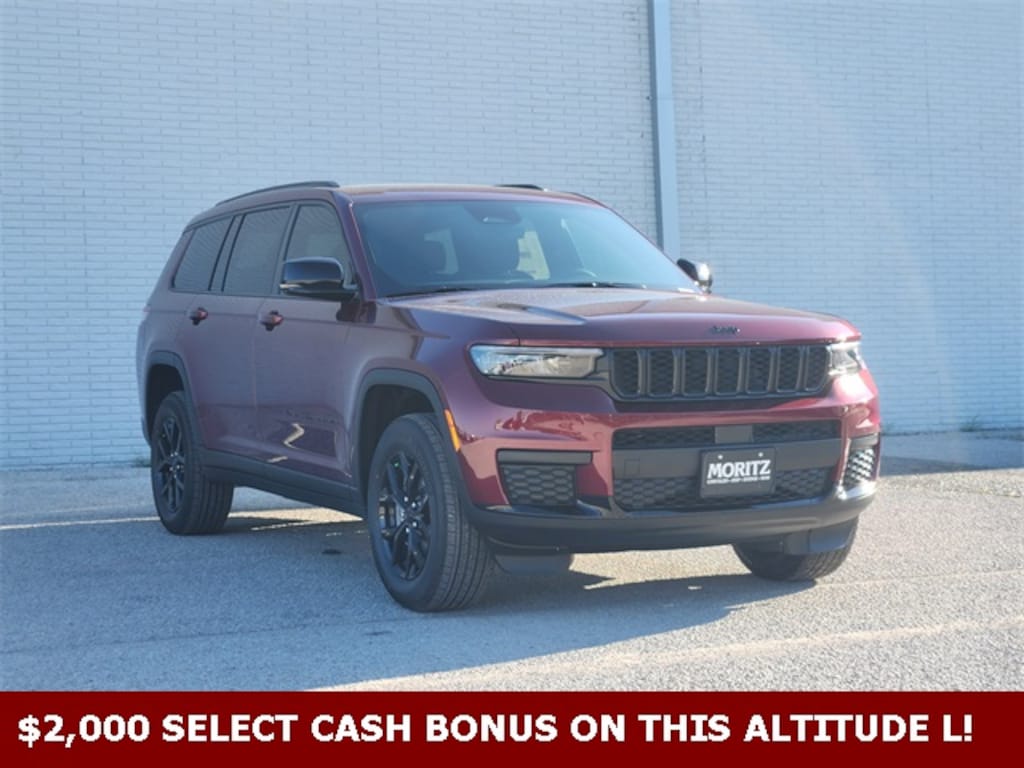 Velvet Red Pearlcoat 2025 Jeep Grand Cherokee L Altitude X RWD 8-Speed Automatic 3.6L V6 24V VVT Bluetooth, Backup Camera, 115V Auxiliary Power Outlet, 3.45 Rear Axle Ratio, 3rd Row Charge-Only USB Ports, Altitude X, Automatic temperature control, Black Headliner, Capri Leatherette/Suede Seats, Delete Laredo Badge, Driver vanity mirror, Dual front impact airbags, Dual front side impact airbags, Electronic Stability Control, Emergency communication system, Front anti-roll bar, Front Center Armrest w/Storage, Front reading lights, Fully automatic headlights, Gloss Black Exterior Accents, Heated door mirrors, Heated Front Seats, Heated Steering Wheel, Illuminated entry, Knee airbag, Low tire pressure warning, Manual Fold Seatbacks, Model Year Tracking, Normal Duty Suspension, Occupant sensing airbag, Outside temperature display, Overhead airbag, Overhead console, Panic alarm, ParkView Rear Back-Up Camera, Passenger vanity mirror, Power door mirrors, Power Liftgate, Power steering, Power Sunroof, Quick Order Package 23M Altitude X, Radio: Uconnect 5 w/8.4" Display, Rain Sensitive Windshield Wipers, Rear air conditioning, Rear anti-roll bar, Rear reading lights, Rear window defroster, Remote keyless entry, Remote Start System, Security system, Selectable Tire Fill Alert, Speed-Sensitive Wipers, Split folding rear seat, Steering wheel mounted audio controls, Telescoping steering wheel, Tilt steering wheel, Traction control, Trip computer, Variably intermittent wipers, Voltmeter, Wheels: 18" x 8.0" Fully Painted Aluminum, Wheels: 18" x 8.0" Fully Painted Aluminum 1, Wireless Charging Pad. Prices do not include tax, title and license fees.$2000 - 2025 National Retail Bonus Cash . Exp. 11/03/2025 $500 - 2025 National Jeep Monopoly Money Bonus Cash . Exp. 11/03/2025