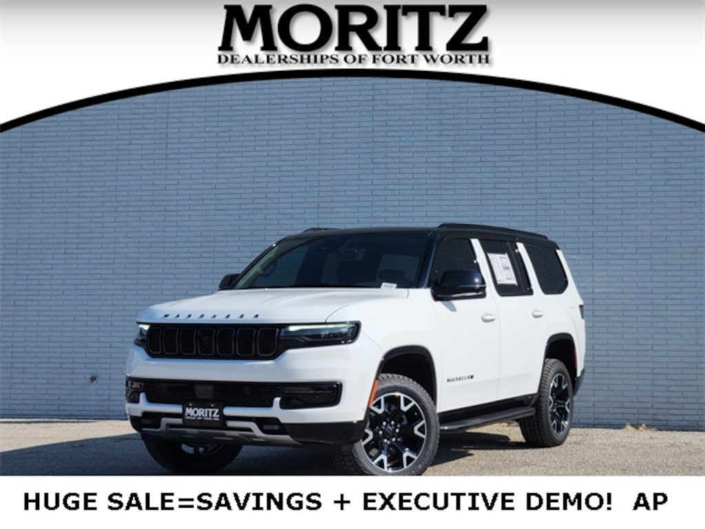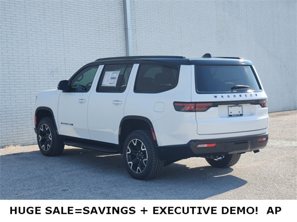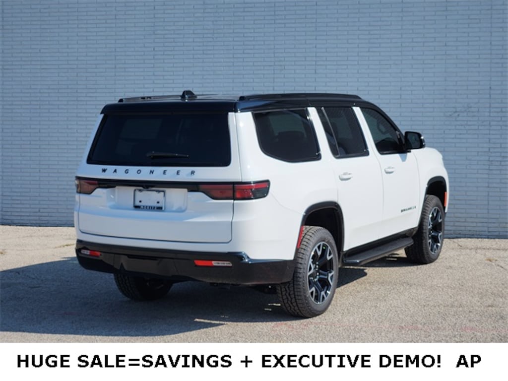 Bright White Clearcoat 2025 Jeep Wagoneer Series II DEMO 4WD 8-Speed Automatic 3.0L I6 Bluetooth, Backup Camera, 10 Speakers, 2 Speed On Demand Transfer Case, 3 Panel Sunroof, 3.92 Rear Axle Ratio, 4-Wheel Disc Brakes, 60/40 Power Recline 3rd Row Seat, Adjustable Roof Rail Crossbars, Air Conditioning, All-Season Floor Mats, Alloy wheels, AM/FM radio: SiriusXM with 360L, Apple CarPlay/Android Auto, Audio memory, Auto Adjust In Reverse Exterior Mirrors, Auto High Beam Headlamp Control, Auto Power Folding Exterior Mirrors, Auto Power-Folding Mirrors, Auto-Dimming Exterior Driver Mirror, Auto-leveling suspension, Automatic temperature control, Black Exterior Accents, Black Roof, Cargo Tray, Compass, Delay-off headlights, Driver door bin, Driver's Seat Mounted Armrest, Dual front impact airbags, Dual front side impact airbags, Electronic Rear Limited Slip Differential, Electronic Stability Control, Exterior Mirrors Approach Lamps, Exterior Mirrors w/Memory, Exterior Mirrors w/Supplemental Signals, Front anti-roll bar, Front Center Armrest w/Storage, Front dual zone A/C, Front fog lights, Front reading lights, Fuel Tank Skid Plate Shield, Fully automatic headlights, Garage door transmitter, Genuine wood dashboard insert, Heated Exterior Mirrors, Heated front seats, Heated steering wheel, Heavy-Duty Engine Cooling, Illuminated entry, Knee airbag, Leather Trimmed Bucket Seats, Navigation System, Occupant sensing airbag, Overland Appearance Package, Overland Exterior Accents, P&P Park & Unpark Assist w/Stop System, Panic alarm, ParkView Rear Back-Up Camera, Passenger vanity mirror, Power adjustable front head restraints, Power driver seat, Power windows, Quadra-Lift Air Suspension, Quick Order Package 25P Overland, Radio data system, Radio: Uconnect 5 Nav w/10.1" Display, Rain sensing wipers, Rear air conditioning, Rear anti-roll bar, Rear dual zone A/C, Rear reading lights, Rear window defroster, Reclining 3rd row seat, Removable Rear Tow Hook, Security system, Selec-Speed Control, Semi Active Damping, Side Distance Warning, Speed-Sensitive Wipers, Split folding rear seat, Steering wheel memory, Steering wheel mounted audio controls, Surround View Camera System, Tachometer, Telescoping steering wheel, Traction control, Trailer Brake Control, Trailer Hitch Zoom, Trip computer, Vapor Tow Hooks, Variably intermittent wipers, Wheels: 20" x 9.0" Machine Face Painted Aluminum.