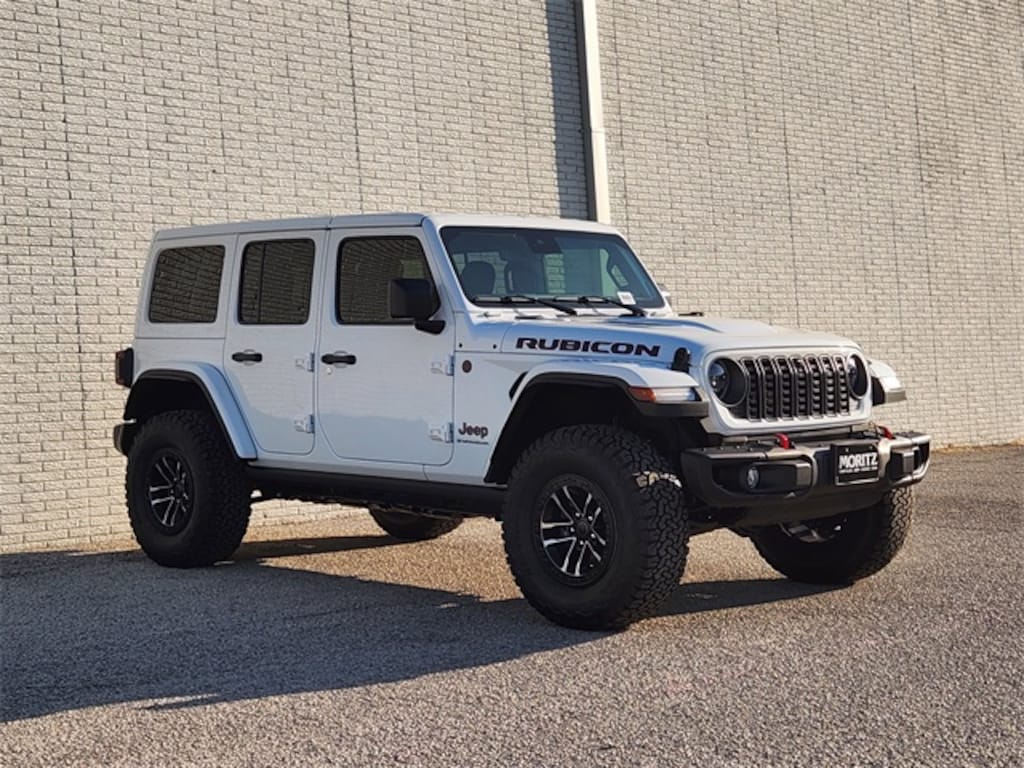 Bright White Clearcoat 2025 Jeep Wrangler Rubicon X IN-TRANSIT 4WD 8-Speed Automatic 3.6L V6 24V VVT Bluetooth, Backup Camera, 12.3" Touchscreen Display, 35" Tire Suspension, 4-Wheel Disc Brakes, 4.56 Rear Axle Ratio, 4G LTE Wi-Fi Hot Spot, 97 MPH Vehicle Max Speed Calibration, Acoustic Front Seat Area Carpet, Acoustic Laminated Front Door Glass, Air Conditioning, Alloy wheels, Alpine Premium Audio System, Anti-Lock 4-Wheel Disc Perf Brakes, Apple CarPlay, Auto High Beam Headlamp Control, Auto-Dimming Rear-View Mirror, Automatic temperature control, Auxiliary Switches, Blind Spot & Cross Path Detection, Body Color 3-Piece Hard Top, Body Color Rubicon Highline Flare, Class II Receiver Hitch, Connected Travel & Traffic Services, Connectivity - US/Canada, Convenience Group, Electronic Stability Control, Emergency communication system: Jeep Connect, Freedom Panel Storage Bag, Front fog lights, Front License Plate Bracket (DISC), Fully automatic headlights, Google Android Auto, GPS Navigation, HD Radio, Heated door mirrors, Heated Front Seats, Heated Steering Wheel, Integrated Off-Road Camera, Integrated Voice Command w/Bluetooth, Leather Wrapped Park Brake Handle, Leather Wrapped Shift Knob, Low tire pressure warning, MOPAR Hardtop Headliner, MOPAR Hinge-Gate Reinforcement, Nappa Leather Seats, Occupant sensing airbag, Overhead airbag, ParkSense Rear Park Assist System, ParkView Rear Back-Up Camera, Performance Suspension, Power 4-Way Driver Lumbar Adjust, Power 4-Way Passenger Lumbar Adjust, Power Adjust 8-Way Driver Seat, Power Adjust 8-Way Front Passenger Seat, Power steering, Power windows, Premium Door Trim Panel, Quick Order Package 24Y Rubicon X, Radio: Uconnect 5 Nav w/12.3" Display, Rear anti-roll bar, Rear Window Defroster, Rear Window Wiper/Washer, Safety Group, SiriusXM Radio Service, SiriusXM w/360L, Steel Front Bumper, Steel Rear Bumper, Technology Group, Trailer Tow & Aux Switch Group, Trailer Tow Prep Package, Universal Garage Door Opener, Wheels: 17" x 8" Machined w/Black Pockets, Xtreme 35" Tire Package.