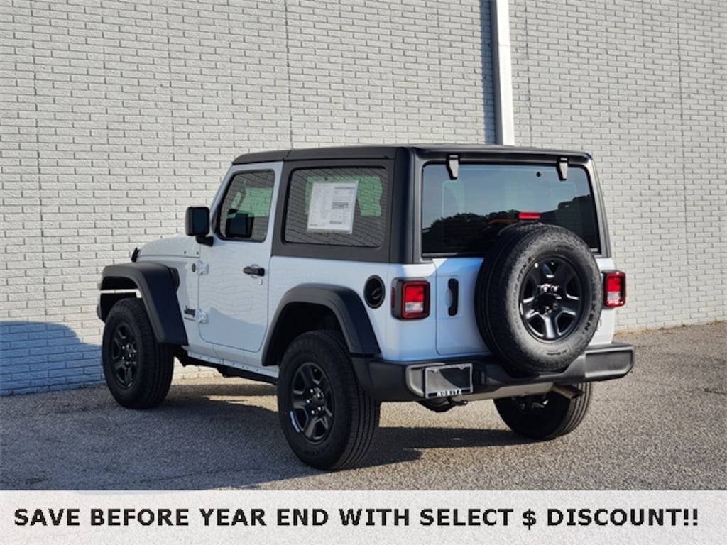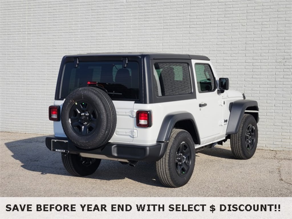 Bright White Clearcoat 2026 Jeep Wrangler 2 Door Sport 4WD 8-Speed Automatic 2.0L I4 DOHC Bluetooth, Backup Camera, ABS brakes, Compass, Electronic Stability Control, Illuminated entry, Low tire pressure warning, ParkView Rear Back-Up Camera, Remote keyless entry, Traction control. Prices do not include tax, title and license fees.$1000 - 2026 National Select Inventory Bonus Cash . Exp. 01/05/2026