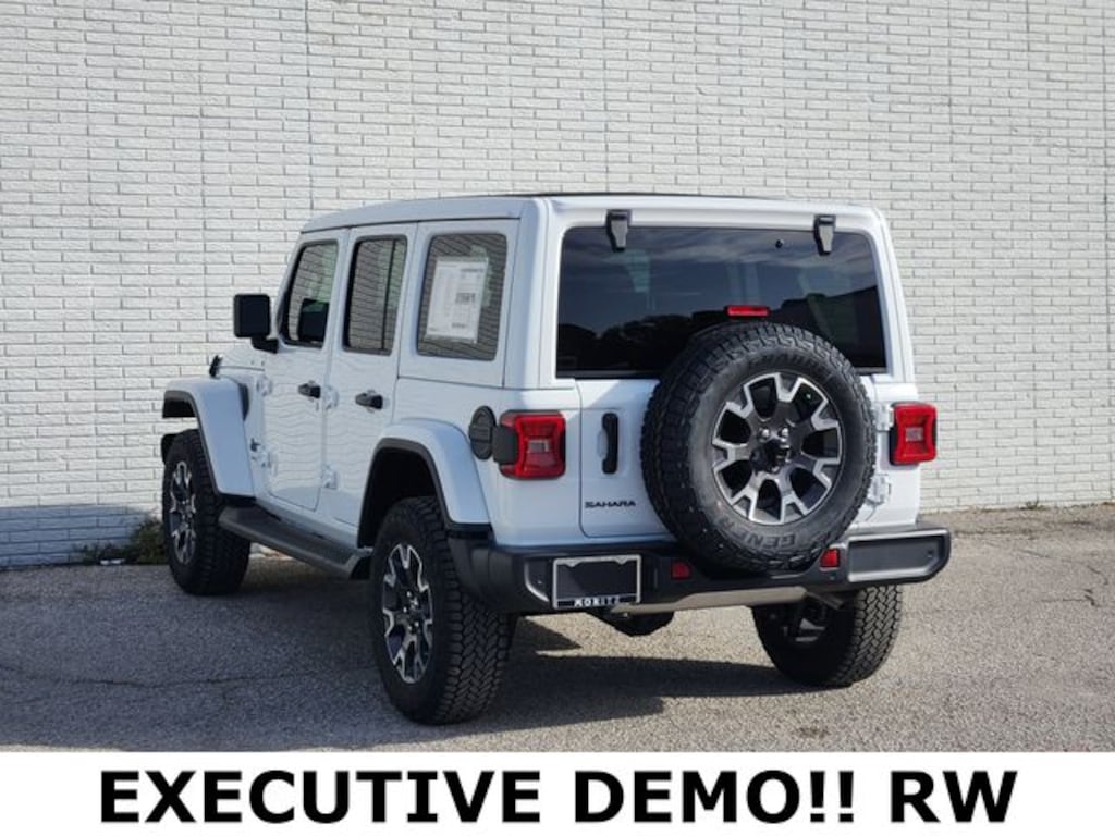 Bright White Clearcoat 2026 Jeep Wrangler Sahara DEMO 4WD 8-Speed Automatic 3.6L V6 24V VVT Bluetooth, Backup Camera, 12.3" Touchscreen Display, 3.45 Overall Top Gear Ratio, 4-Wheel Disc Brakes, 4G LTE Wi-Fi Hot Spot, Air Conditioning, Alloy wheels, Alpine Premium Audio System, Apple CarPlay, Auto High Beam Headlamp Control, Auto-Dimming Rear-View Mirror, Automatic temperature control, Blind Spot and Cross Path Detection, Cloth Low-Back Bucket Seats, Connected Travel and Traffic Services, Connectivity - US/Canada, Delay-off headlights, Dual front impact airbags, Dual front side impact airbags, Emergency communication system: Jeep Connect, For More Info, Call 800-643-2112, Front anti-roll bar, Front Center Armrest w/Storage, Front dual zone A/C, Fully automatic headlights, Google Android Auto, GPS Navigation, Hard Seat Back, HD Radio, Heated door mirrors, Heavy Duty Suspension with Gas Shocks, Integrated Center Stack Radio, Integrated Off-Road Camera, Integrated roll-over protection, Integrated Voice Command with Bluetooth, Leather Wrapped Park Brake Handle, Leather Wrapped Shift Knob, McKinley Trimmed Seats, Occupant sensing airbag, Outside temperature display, Overhead airbag, Panic alarm, ParkSense Rear Park Assist System, ParkView Rear Back-Up Camera, Power 4-Way Driver Lumbar Adjust, Power 4-Way Passenger Lumbar Adjust, Power Adjust 8-Way Driver Seat, Power Adjust 8-Way Front Passenger Seat, Power Top Quarter Window Storage Bag, Quick Order Package 24G, Radio: Uconnect 5 Navigation with 12.3" Display, Rear reading lights, Rear Window Defroster, Rear Window Wiper/Washer, Sahara Popular Equipment Group, Side Steps, SiriusXM Radio Service, SiriusXM with 360L, Speed control, Stop-Start Dual Battery System, Telescoping steering wheel, Trip computer, Universal Garage Door Opener, Variably intermittent wipers, Wheels: 18" x 7.5 Machine/Painted Gray, Wheels: 18" x 7.5" Machine/Painted Gray. Prices do not include tax, title and license fees.$1000 - 2026 National Retail Bonus Cash . Exp. 04/30/2026