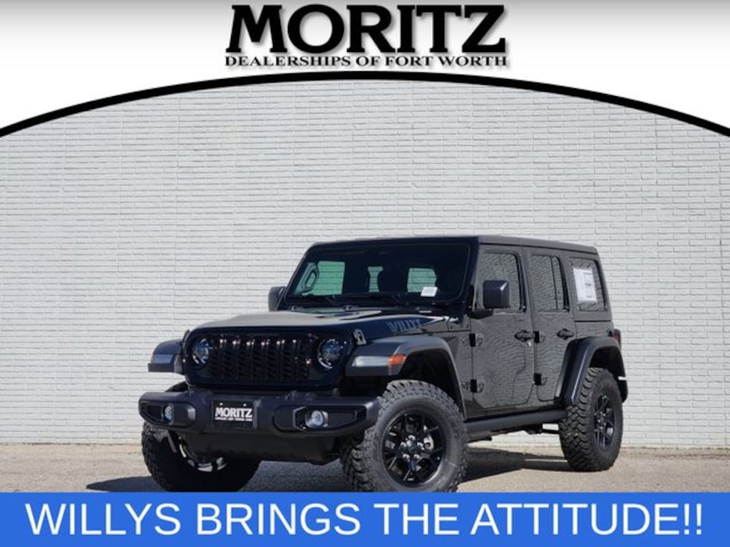 Black Clearcoat 2026 Jeep Wrangler Willys 4WD 8-Speed Automatic 3.6L V6 24V VVT 12.3" Touchscreen Display, 3.45 Overall Top Gear Ratio, 4G LTE Wi-Fi Hot Spot, 8 Speakers, ABS brakes, Air Conditioning, AM/FM radio: SiriusXM with 360L, Apple CarPlay, Apple CarPlay/Android Auto, Aux Battery, Compass, Delay-off headlights, Dual front impact airbags, Dual front side impact airbags, Electronic Stability Control, Front Center Armrest w/Storage, Front fog lights, Illuminated entry, Integrated Center Stack Radio, Low tire pressure warning, Occupant sensing airbag, Overhead airbag, ParkView Rear Back-Up Camera, Power steering, Power windows, Rear anti-roll bar, Rear reading lights, Remote keyless entry, SiriusXM Radio Service, Speed control, Stop-Start Dual Battery System, Telescoping steering wheel, Tilt steering wheel, Traction control, Trip computer, Variably intermittent wipers, Wheels: 17" x 7.5" Black Steel Styled. Prices do not include tax, title and license fees.$1000 - 2026 National Retail Bonus Cash . Exp. 04/30/2026 $1500 - 2026 Southwest BC Bonus Cash . Exp. 04/30/2026 $2500 - 2026 National Select Inventory Bonus Cash. Exp. 01/04/2027