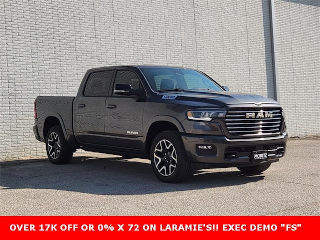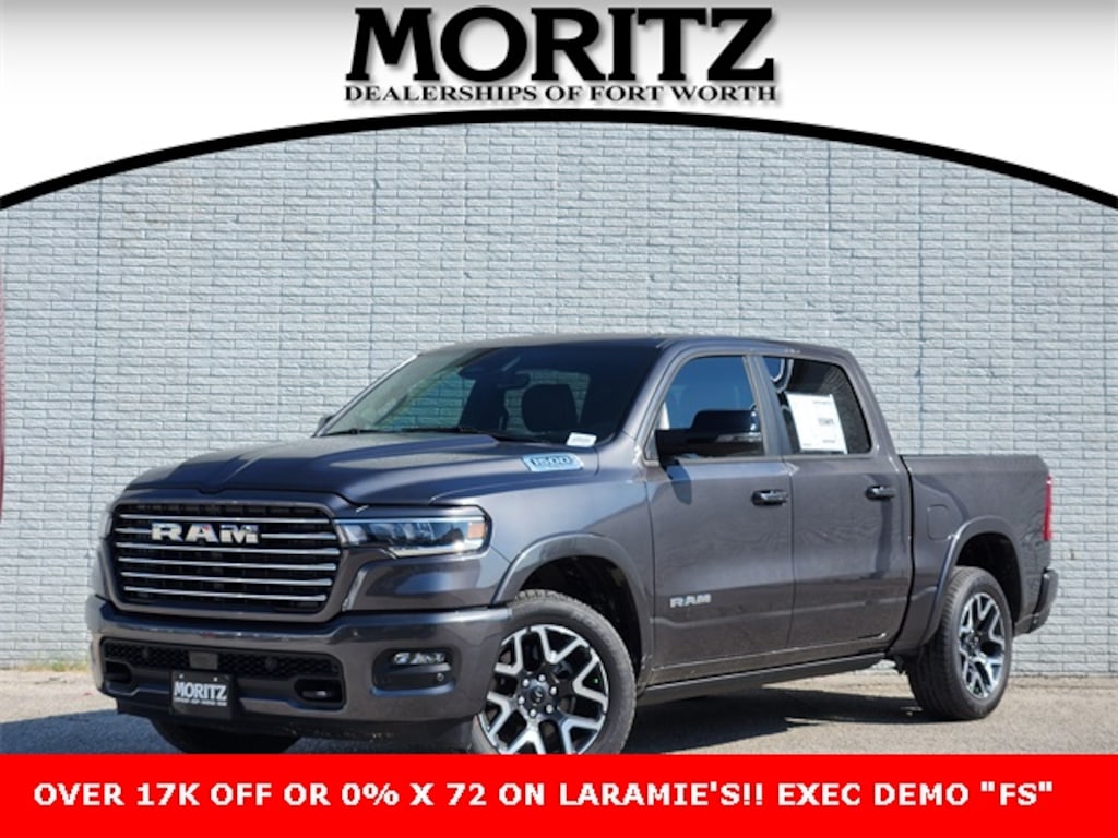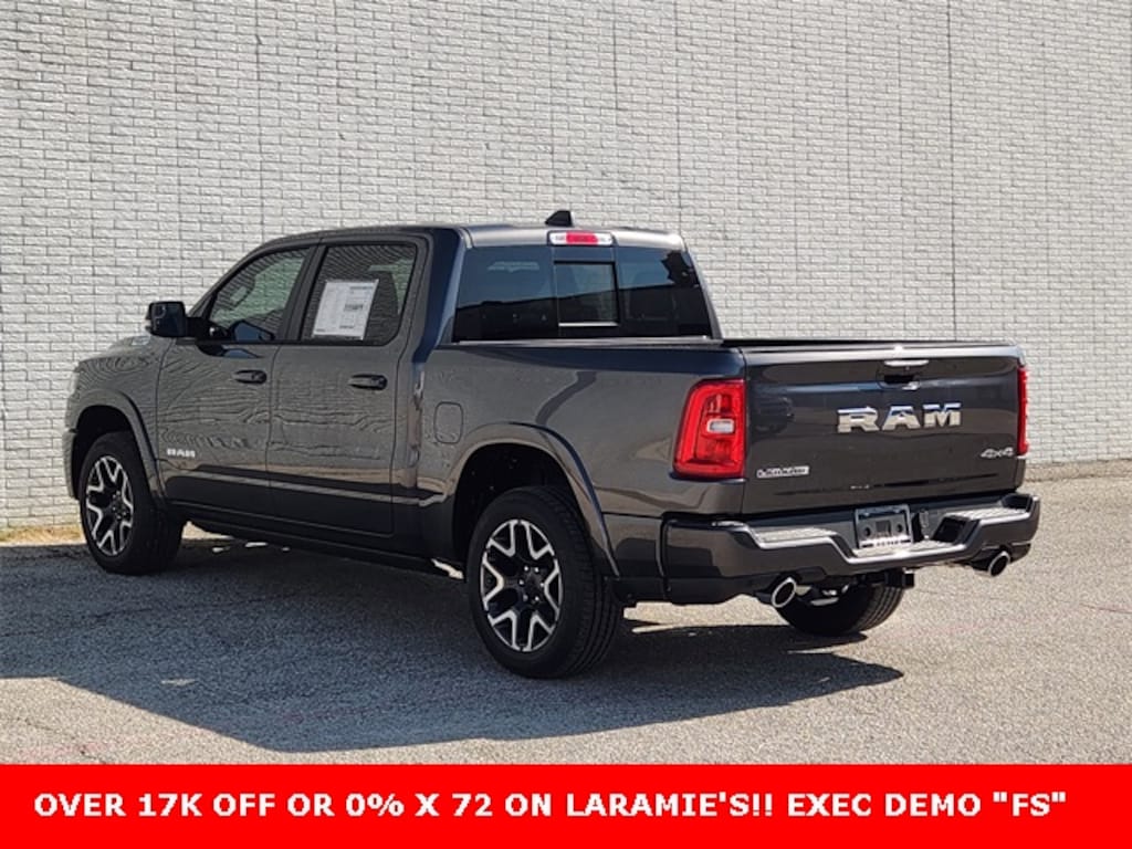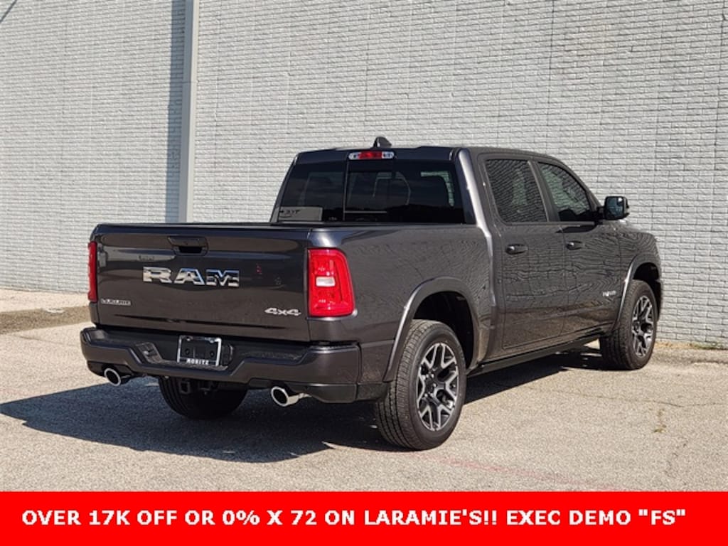 Granite Crystal Metallic Clearcoat 2025 Ram 1500 Laramie DEMO 4WD 8-Speed Automatic 3.0L I6 Bluetooth, Backup Camera, 3.55 Rear Axle Ratio, 4 Way Front Headrests, Accent Color Premium Power Mirrors, Auto Power-Folding Mirrors, Auto-Dimming Exterior Driver Mirror, Black Painted Exterior Mirrors Caps, Body Color Front Bumper, Body Color Rear Bumper w/Step Pads, Brake assist, Convex Wide-Angle Exterior Mirror Insert, Dome Dual LED Reading Lamp, Dual front impact airbags, Dual front side impact airbags, Dual-Pane Panoramic Sunroof, Electronic Stability Control, Exterior Mirrors Courtesy Lamps, Exterior Mirrors w/Heating Element, Exterior Mirrors w/Memory, Exterior Mirrors w/Supplemental Signals, Fully automatic headlights, GPS Navigation, Grille Surround 3 Body Color Tex 4 Chrome, Heated front seats, Heated rear seats, Heated Steering Wheel, Heated steering wheel, Integrated Voice Command w/Bluetooth, Laramie Level 1 Equipment Group, Laramie Southwest Edition, Leather steering wheel, Leather Trim 40/20/40 Bench Seat, LED Dome/Reading Lamp, Manufacturer's Statement of Origin, MOPAR Front & Rear Rubber Floor Mats, Navigation System, Overhead airbag, Overhead console, ParkView Rear Back-Up Camera, Power 2-Way Driver Lumbar Adjust, Power Deployable Running Boards, Quick Order Package 21H Laramie, Rain Sensitive Windshield Wipers, RAM Grille Badge - Chrome, Rear step bumper, Remote keyless entry, Remote Tailgate Release, SiriusXM w/360L, Speed control, Steering wheel mounted audio controls, Telescoping steering wheel, Tilt steering wheel, Tow Hooks, Traction control, Trailer Brake Control, USB Host Flip, Ventilated Front Seats, Ventilated front seats, Wheels: 20" x 9" Premium Paint/Polish.