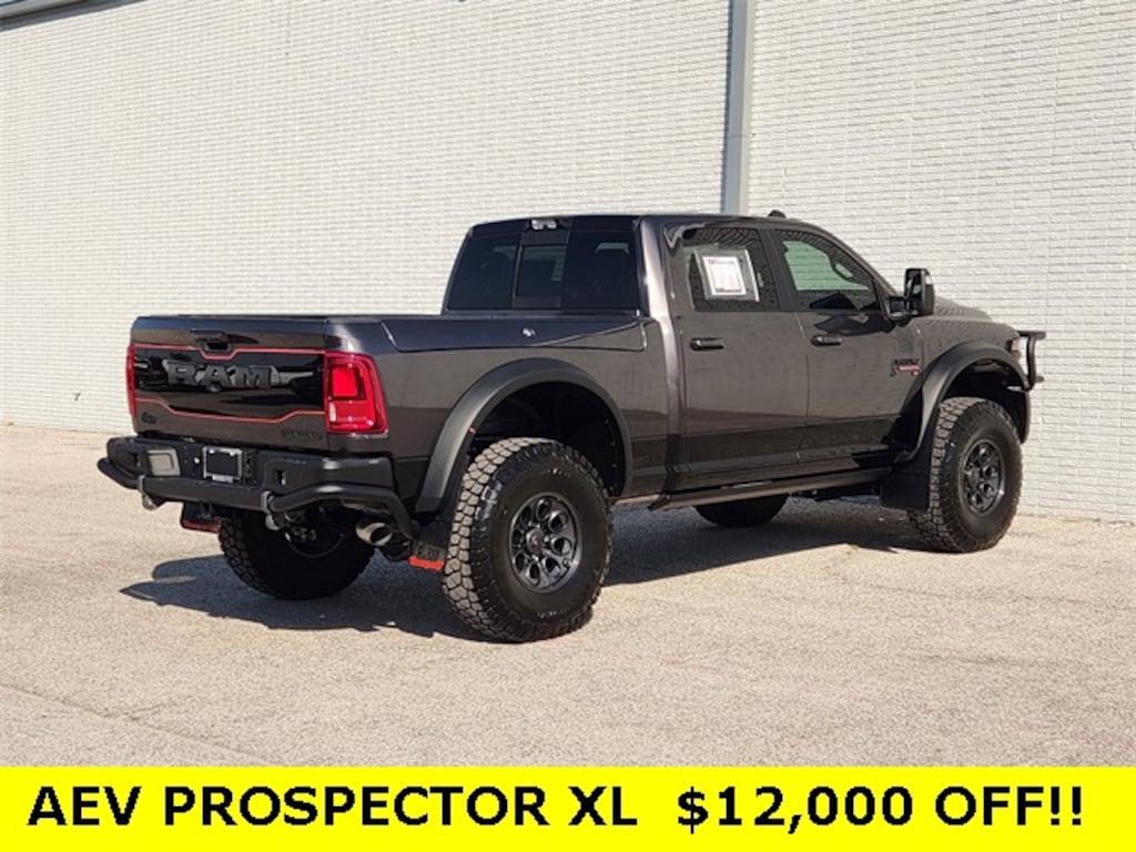 Granite Crystal Metallic Clearcoat 2025 Ram 2500 Rebel AEV 4WD 8-Speed Automatic 6.7L I6 Bluetooth, Backup Camera, AEV PROSPECTOR XL 2500 REBEL, 115V Auxiliary Rear Power Outlet, 14.4" Touchscreen Display, 17 Speaker harman/kardon Premium Sound, 2 Way Rear Headrest Seat, 4 Adjustable Cargo Tie-Down Hooks, 4 Way Front Headrests, 4-Wheel Disc Brakes, 4G LTE Wi-Fi Hot Spot, ABS brakes, Adjustable pedals, Air Conditioning, Alexa Built-In, Alloy wheels, Aluminum Litho Instrument Panel Bezels w/Blk Trim, Apple CarPlay, Apple CarPlay/Android Auto, Auto Level Rear Air Suspension, Auto Power-Folding Mirrors, Auto-dimming Rear-View mirror, Automatic temperature control, Black Exterior Mirrors, Black Vinyl Floor Covering, Black Wheel Center Hub, Brake assist, Bucket Seats, Cloth Heated Power Bench Seat, Compass, Connected Travel & Traffic Services, Connectivity - US/Canada, CTR Stop Lamp w/Cargo View Camera, Dash Pass Thru Wire Circuits, Delay-off headlights, Disassociated Touchscreen Display, Driver door bin, Dual front impact airbags, Dual front side impact airbags, Dual Wireless Charging Pad, Electronic Stability Control, Emergency Vehicle Alert System (EVAS), Engine Block Heater, Exterior Mirrors Courtesy Lamps, Exterior Mirrors w/Supplemental Signals, Folding Flat Load Floor Storage, Front anti-roll bar, Front Center Armrest w/Storage, Front dual zone A/C, Front fog lights, Front License Plate Bracket, Front Passenger Interactive Display, Front Seat Back Map Pockets, Full Length Upgraded Floor Console, Fully automatic headlights, Global Telematics Box Module (TBM), Google Android Auto, GPS Antenna Input, GPS Navigation, HD Radio, Heated door mirrors, Heated Front Seats, Heated Second Row Seats, Heated Steering Wheel, High Back Seats, Integrated Voice Command w/Bluetooth, Leather Trimmed Bucket Seats (NL), Leather Wrapped Grab Handle, Leather Wrapped Shift Control, LED Bed Lighting, Low tire pressure warning, Luxury Door Trim Panel (CTH), Media Hub w/2 Charge Only USBs, Mirror Running Lights, MOPAR Deployable Bed Step, MOPAR Spray In Bedliner, Navigation System, Occupant sensing airbag, Off-Road Info Pages, Outside temperature display, Overhead airbag, Overhead console, Panic alarm, ParkView Rear Back-Up Camera, Passenger door bin, Power 2-Way Driver Lumbar Adjust, Power 2-Way Passenger Lumbar Adjust, Power Adjust 8-Way Driver Seat, Power Adjust 8-Way Front Passenger Seat, Power Adjust Mirrors, Power Adjustable Convex Aux Mirrors, Power Deployable Running Boards, Power driver seat, Power steering, Power Telescoping Mirrors, Power windows, Quick Order Package 24R Rebel, Radio data system, Radio: Uconnect 5 Nav w/14.4" Display, Radio/Driver Seat/Mirrors/Pedals Memory, RamBox Cargo Management System, Rear 60/40 Folding Seat, Rear anti-roll bar, Rear step bumper, Rear window defroster, Rebel Level 2 Equipment Group, Remote keyless entry, Security system, Selectable Tire Fill Alert, SiriusXM Radio Service, SiriusXM w/360L, Steering wheel mounted audio controls, Surround View Camera System, Tachometer, Tilt steering wheel, Towing Technology Group, Trailer Reverse Guidance, Trailer Tire Pressure Monitoring System, Trailer Tow Pages, Trip computer, Truck Bed Cargo Divider, Turn signal indicator mirrors, Variably intermittent wipers, Vendor Painted Cargo Box, Vendor Painted Cargo Box Tracking, Ventilated Front Seats, Voltmeter. Prices do not include tax, title and license fees.$2000 - 2025 National Bonus Cash . Exp. 11/03/2025 Price includes dealer added accessories.