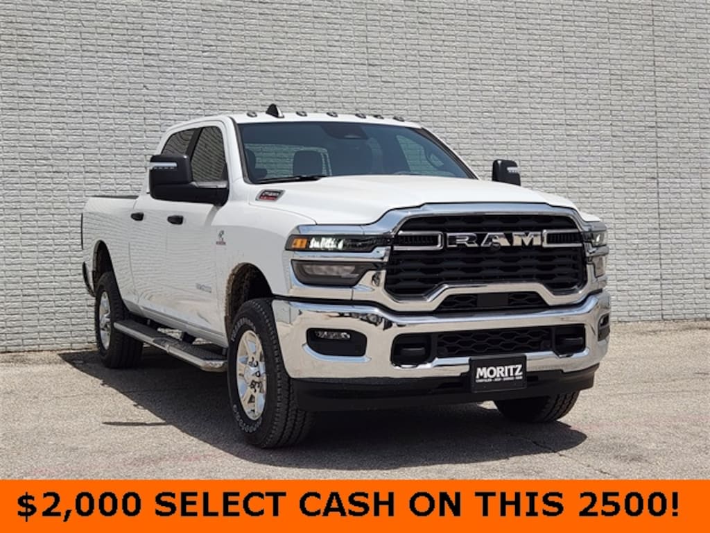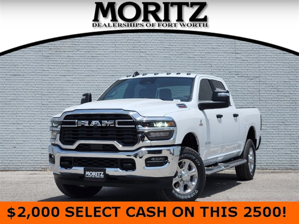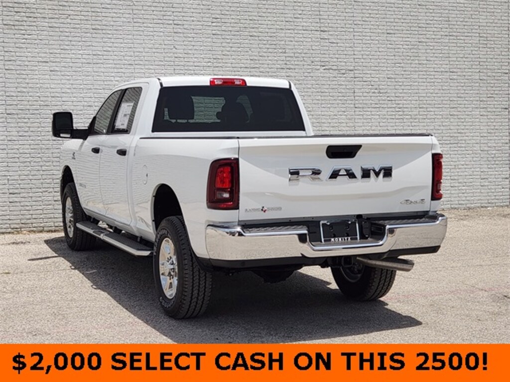 Bright White Clearcoat 2025 Ram 2500 Big Horn 4WD 8-Speed Automatic 6.7L I6 Bluetooth, Backup Camera, 12" Touchscreen Display, 2 Way Rear Headrest Seat, 2nd Row In Floor Storage Bins, 4 Way Front Headrests, 40/20/40 Split Bench Seat, 4G LTE Wi-Fi Hot Spot, 9 Alpine Speakers w/Subwoofer, Air Conditioning ATC w/Dual Zone Control, Alexa Built-In, Anti-Spin Differential Rear Axle, Apple CarPlay, Auto Power-Folding Mirrors, Auto-Dimming Rear-View Mirror, Big Horn Level 1 Plus Equipment Group, Black Exterior Mirrors, Connected Travel & Traffic Services, Connectivity - US/Canada, Dual Glove Boxes, Emergency Vehicle Alert System (EVAS), Exterior Mirrors Courtesy Lamps, Exterior Mirrors w/Heating Element, Exterior Mirrors w/Supplemental Signals, Foam Bottle Insert (Door Trim Panel), Folding Flat Load Floor Storage, Footwell Courtesy Lamp, Forward & Reverse Utility Lights, Front Armrest w/Cupholders, Front Center Seat Cushion Storage, Front Performance Tuned Shock Absorbers, Front Seat Back Map Pockets, Global Telematics Box Module (TBM), Glove Box Lamp, Google Android Auto, GPS Antenna Input, GPS Navigation, HD Radio, Heated Front Seats, Heated Seats & Wheel Group, Heated Steering Wheel, Integrated Voice Command w/Bluetooth, LED Bed Lighting, Locking Lower Glove Box, Lone Star Badge, Luxury Steering Wheel, Manual Adjust 4-Way Front Passenger Seat, Mirror Running Lights, MOPAR Deployable Bed Step, MOPAR Spray In Bedliner, Off Road Package, Off-Road Info Pages, Power 2-Way Driver Lumbar Adjust, Power Adjust 8-Way Driver Seat, Power Adjust Mirrors, Power Adjustable Convex Aux Mirrors, Power Heated Folding Telescopic Mirrors, Power Telescoping Mirrors, Premium Cloth 40/20/40 Bench Seat, Quick Order Package 24Y Lone Star (Regional), Radio: Uconnect 5 Nav w/12.0" Display, Rear 60/40 Folding Seat, Rear Dome w/On/Off Switch Lamp, Rear Performance Tuned Shock Absorbers, Remote Start System, Remote USB Port - Charge Only, Selectable Tire Fill Alert, SiriusXM Radio Service, SiriusXM w/360L, Steering Wheel Mounted Audio Controls, Storage Tray, Trailer Tow Pages. Prices do not include tax, title and license fees.$2000 - 2025 National Bonus Cash . Exp. 11/03/2025