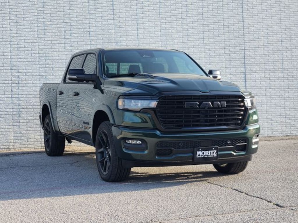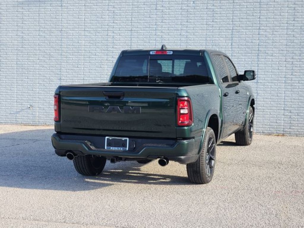 Serrano Green Metallic 2026 Ram 1500 Laramie 4WD 8-Speed Automatic HEMI 5.7L V8 Multi Displacement VVT eTorque Bluetooth, Backup Camera, 10 Speakers, 3.92 Rear Axle Ratio, 4-Wheel Disc Brakes, ABS brakes, Accent Color Door Handles, Accent Color Premium Power Mirrors, Accent Color Tailgate Handle, Active Noise Control System, Air Conditioning, Anti-Spin Differential Rear Axle, Apple CarPlay/Android Auto, Audio memory, Auto Power-Folding Mirrors, Auto-dimming door mirrors, Auto-Dimming Exterior Driver Mirror, Black Exterior Truck Badging, Black Headlamp Bezels, Black Interior Accents, Black Painted Exterior Mirrors Caps, Black Tail Lamp Bezels, Body Color Front Bumper, Body Color Rear Bumper with Step Pads, Brake assist, Convex Wide-Angle Exterior Mirror Insert, Dual Exhaust with Black Tips, Electronic Stability Control, Exterior Mirrors Approach Lamps, Exterior Mirrors Courtesy Lamps, Exterior Mirrors with Heating Element, Exterior Mirrors with Memory, Exterior Mirrors with Supplemental Signals, GPS Navigation, Grille Surround 3 Black Texture 2 Black, Laramie Level 1 Equipment Group, Low tire pressure warning, Navigation System, Night Edition, Panic alarm, Pirelli Brand Tires, Proximity Approach/Departure Lamps, Quick Order Package 27H Laramie, Radio: Uconnect 5 Navigation with 12.0" Display, Rain Sensitive Windshield Wipers, RAM Grille Badge - Black, Remote keyless entry, Remote Tailgate Release, Security system, SiriusXM with 360L, Speed control, Sport Performance Hood, Traction control, Trailer Brake Control, Turn signal indicator mirrors, Wheels: 22" x 9" Forged Aluminum. Prices do not include tax, title and license fees.$1000 - 2026 Southwest BC State of Texas Regional Bonus Cash . Exp. 04/30/2026 $3500 - 2026 National Retail Bonus Cash . Exp. 04/30/2026 $750 - 2026 Southwest BC Retail Bonus Cash . Exp. 04/30/2026