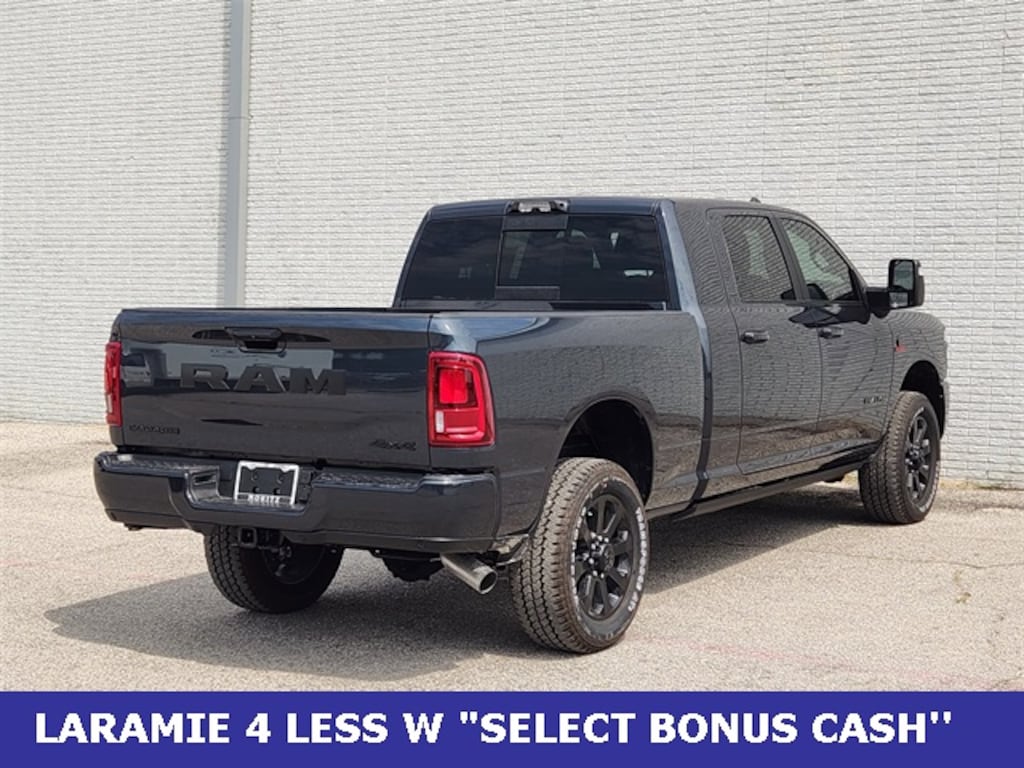 Pcg 2026 Ram 2500 Laramie 4WD 8-Speed Automatic 6.7L I6 Bluetooth, Backup Camera, #1 Seat Foam Cushion, 115V Auxiliary Rear Power Outlet, 14.4" Touchscreen Display, 17 Speaker harman/kardon Premium Sound, 2 Way Rear Headrest Seat, 3.42 Axle Ratio, 4 Way Front Headrests, 4G LTE Wi-Fi Hot Spot, Active Lane Management System, Adaptive Steering System, Alexa Built-In, Anti-Spin Differential Rear Axle, Apple CarPlay, Auto Adjust In Reverse Exterior Mirrors, Auto Dim Exterior Mirror, Auto High Beam Headlamp Control, Auto Power-Folding Mirrors, Auto-Dimming Exterior Passenger Mirror, Automatic temperature control, Black Exterior Truck Badging, Black Wheel Center Hub, Body Color Grille Surround, Bucket Seats, Bumpers: body-color, Center Stop Lamp w/Cargo View Camera, Connected Travel & Traffic Services, Connectivity - US/Canada, Disassociated Touchscreen Display, Drowsy Driver Detection, Dual front impact airbags, Dual front side impact airbags, Dual Wireless Charging Pad, Electronic Stability Control, Emergency Vehicle Alert System (EVAS), Exterior Mirrors Courtesy Lamps, Exterior Mirrors w/Heating Element, Exterior Mirrors w/Memory, Exterior Mirrors w/Supplemental Signals, Foam Bottle Insert (Door Trim Panel), For Details, Visit DriveUconnect.com, For More Info, Call 800-643-2112, Forward & Reverse Utility Lights, Front Seat Back Map Pockets, Full Length Upgraded Floor Console, Global Telematics Box Module (TBM), Gloss Black Grille Billets/Accents, Google Android Auto, GPS Antenna Input, GPS Navigation, HD Radio, Heated Front Seats, Heated Steering Wheel, High Back Seats, Integrated Voice Command w/Bluetooth, Laramie Level 2 Plus Equipment Group, Leather Trimmed Bucket Seats, LED Bed Lighting, Mirror Running Lights, MOPAR Deployable Bed Step, MOPAR Spray In Bedliner, Navigation System, Night Edition, Off-Road Information Pages, Overhead airbag, ParkView Rear Back-Up Camera, Power 2-Way Driver Lumbar Adjust, Power 2-Way Passenger Lumbar Adjust, Power Adjust 8-Way Driver Seat, Power Adjust 8-Way Front Passenger Seat, Power Adjust Mirrors, Power Adjustable Convex Aux Mirrors, Power Adjustable Pedals w/Memory, Power Deployable Running Boards, Power driver seat, Power Heated Fold Telescope Mirrors w/Memory, Power steering, Power Telescoping Mirrors, Power windows, Quick Order Package 24H Laramie, Radio: Uconnect 5 Nav w/12.0" Display, Radio: Uconnect 5 Nav w/14.4" Display, Radio/Driver Seat/Mirrors/Pedals Memory, Rain Sensitive Windshield Wipers, Rear 60/40 Folding Seat, Rear anti-roll bar, Rear window defroster, Remote keyless entry, Remote Tailgate Release, Security system, Selectable Tire Fill Alert, SiriusXM Radio Service, SiriusXM w/360L, Speed control, Sport Performance Hood, Steering wheel mounted audio controls, Surround View Camera System, Towing Technology Group, Traction control, Traffic Sign Recognition, Trailer Reverse Guidance, Trailer Tire Pressure Monitoring System, Trailer Tow Pages, Variably intermittent wipers, Ventilated Front Seats, Wheels: 20" x 8" Black Painted Aluminum. Prices do not include tax, title and license fees.$1000 - 2026 National Bonus Cash . Exp. 12/01/2025