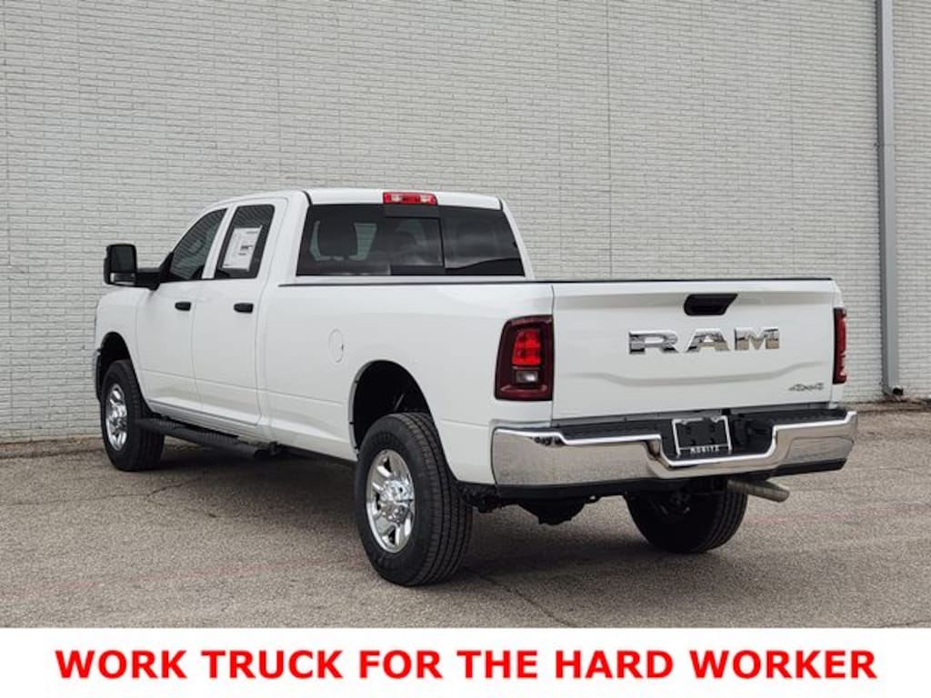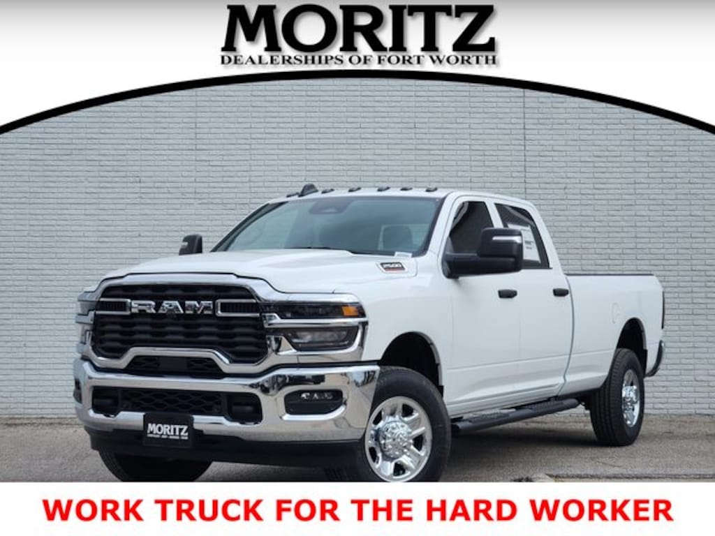 Bright White Clearcoat 2026 Ram 2500 Tradesman 4WD 8-Speed Automatic 6.4L V8 Bluetooth, Backup Camera, 12" Touchscreen Display, 400W Inverter, 4G LTE Wi-Fi Hot Spot, 50 Gallon Fuel Tank, 5th Wheel/Gooseneck Towing Prep Group, Anti-Spin Differential Rear Axle, Apple CarPlay, Auto-Dimming Rear-View Mirror, Black Exterior Mirrors, Bright Front Bumper, Bright Rear Bumper, Carpet Floor Covering, Center Hub, Chrome Grille Surround, Cloth 40/20/40 Bench Seat, Connectivity - US/Canada, Disassociated Touchscreen Display, Electronic Stability Control, Emergency Vehicle Alert System (EVAS), Exterior 115V AC Outlet, Exterior Mirrors Courtesy Lamps, For Details, Visit DriveUconnect.com, For More Info, Call 800-643-2112, Front fog lights, Fully automatic headlights, Google Android Auto, GPS Antenna Input, GPS Navigation, HD Radio, Manual Folding Exterior Mirrors, Manual Telescoping Mirrors, Mirror Running Lights, Mopar Black Tubular Side Steps, Off-Road Info Pages, Panic alarm, ParkSense Front/Rear Park Assist System, ParkView Rear Back-Up Camera, Power Adjust Mirrors, Power Heated Folding Telescope Mirrors, Power-Adjustable Convex Aux Mirrors, Quick Order Package 2UA Tradesman, Rear Power Sliding Window, Remote keyless entry, Selectable Tire Fill Alert, SiriusXM Radio Service, Tinted Acoustic Windshield Glass, Tradesman Level 2 Equipment Group, Trailer Tow Pages, Wheels: 18" x 8.0" Steel Chrome Clad. Prices do not include tax, title and license fees.$1000 - 2026 National Bonus Cash . Exp. 04/30/2026 $1000 - 2026 Southwest BC Retail Bonus Cash . Exp. 04/30/2026 $2000 - 2026 Southwest BC State of Texas Regional Bonus Cash . Exp. 04/30/2026