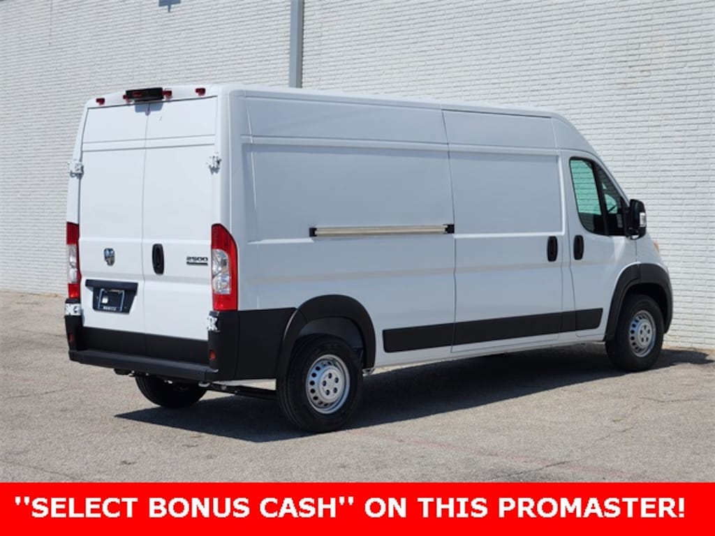 - Bonus Cash Offer: $1,500 cash back on select 2026 Ram ProMaster 2500Details