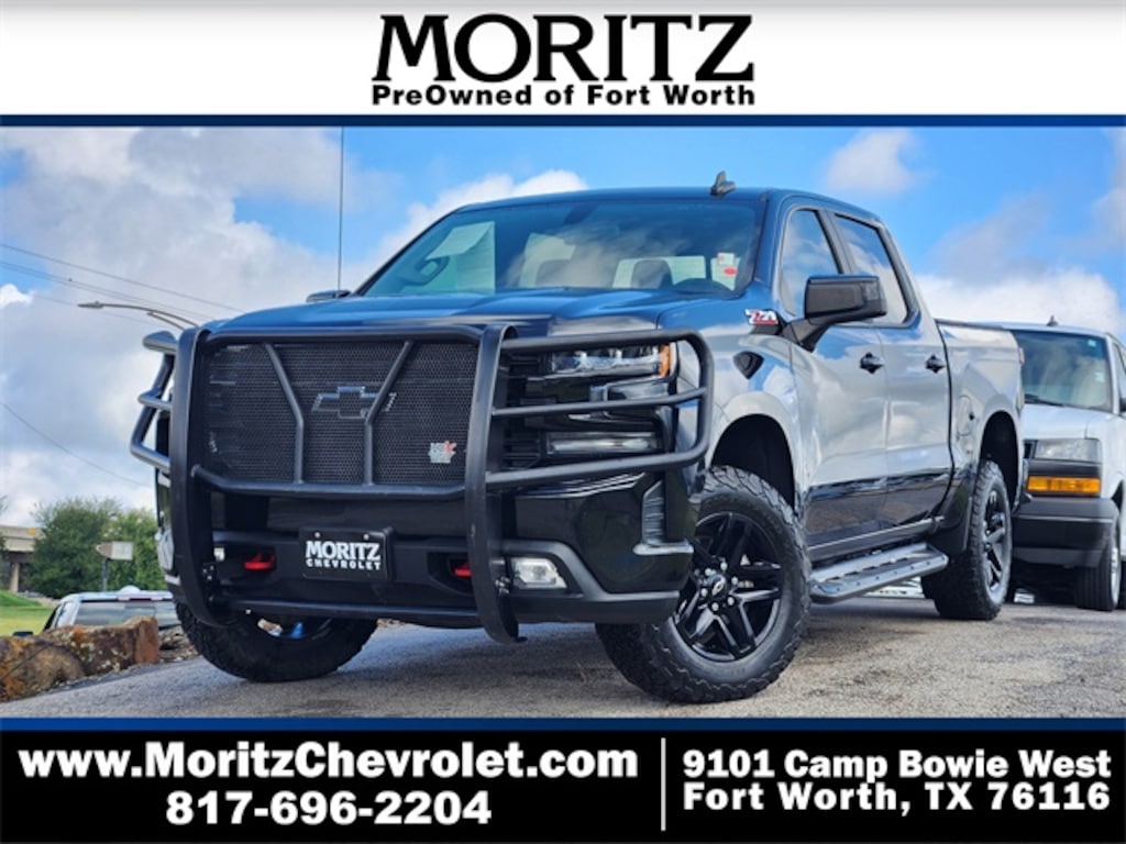 Black 2019 Chevrolet Silverado 1500 LT Trail Boss 4WD 8-Speed Automatic EcoTec3 5.3L V8 Bluetooth, Backup Camera, The Moritz Promise LIMITED LIFETIME POWERTRAIN PROTECTION PLAN See dealer for details, 8-Speed Automatic, 4WD, Black Leather, 10-Way Power Driver Seat w/Lumbar, 12-Volt Rear Auxiliary Power Outlet, 120-Volt Bed Mounted Power Outlet, 120-Volt Instrument Panel Power Outlet, 170 Amp Alternator, 2 USB Ports, 2 USB Ports (First Row), 4-Way Manual Driver Seat Adjuster, 4.2" Diagonal Color Display Driver Info Center, 6-Speaker Audio System, Advanced Trailering Package, Advanced Trailering System, All-Weather Floor Liner (LPO) (AAK), Alloy wheels, Apple CarPlay/Android Auto, Auxiliary External Transmission Oil Cooler, Bed Protection Package, Bluetooth® For Phone, Brake assist, Chevrolet Connected Access, Chevrolet w/4G LTE, Chevytec Spray-On Black Bedliner, Color-Keyed Carpeting Floor Covering, Compass, Convenience Package II, Convenience Package w/Buckets Seats, Deep-Tinted Glass, Dual Exhaust w/Polished Outlets, Dual-Zone Automatic Climate Control, Electric Rear-Window Defogger, Electrical Lock Control Steering Column, Electronic Cruise Control, Electronic Stability Control, Floor Mounted Console, Front anti-roll bar, Front Bucket Seats, Front fog lights, Front LED Fog Lamps, Fully automatic headlights, HD Radio, HD Rear Vision Camera, Heated Driver & Front Passenger Seats, Heated Steering Wheel, Heavy-Duty Rear Locking Differential, High Capacity Air Filter, High Gloss Black Grille, High Gloss Black Mirror Caps, Hill Descent Control, Hitch Guidance, Hitch Guidance w/Hitch View, Illuminated entry, Integrated Trailer Brake Controller, Keyless Open & Start, Leather Appointed Seat Trim, Leather Package, Leather Wrapped Steering Wheel, LED Cargo Area Lighting, Manual Tilt Wheel Steering Column, Manual Tilt/Telescoping Steering Column, Off-Road Assist Steps (LPO), Off-Road Suspension w/2" Lift, OnStar & Chevrolet Connected Services Capable, Performance Red Recovery Hooks, Power Door Locks, Power Front Windows w/Driver Express Up/Down, Power Front Windows w/Passenger Express Down, Power Rear Windows w/Express Down, Power Sliding Rear Window w/Rear Defogger, Preferred Equipment Group 2LT, Premium Bose 7-Speaker Sound System, Radio: Chevrolet Infotainment 3 Plus System, Rear 60/40 Folding Bench Seat (Folds Up), Rear Dual USB Charging-Only Ports, Rear step bumper, Rear Vision Camera, Rear Wheelhouse Liners, Remote keyless entry, Remote Vehicle Starter System, Security system, Single-Zone Manual/Semi-Automatic Air Conditioning, SiriusXM Radio, Speed-sensing steering, Steering Wheel Audio Controls, Steering wheel mounted audio controls, Suspension Package, Theft Deterrent System (Unauthorized Entry), Traction control, Trailer Tire Pressure Monitor System, Trailering Package, Universal Home Remote, Up-Level Rear Seat w/Storage Package.