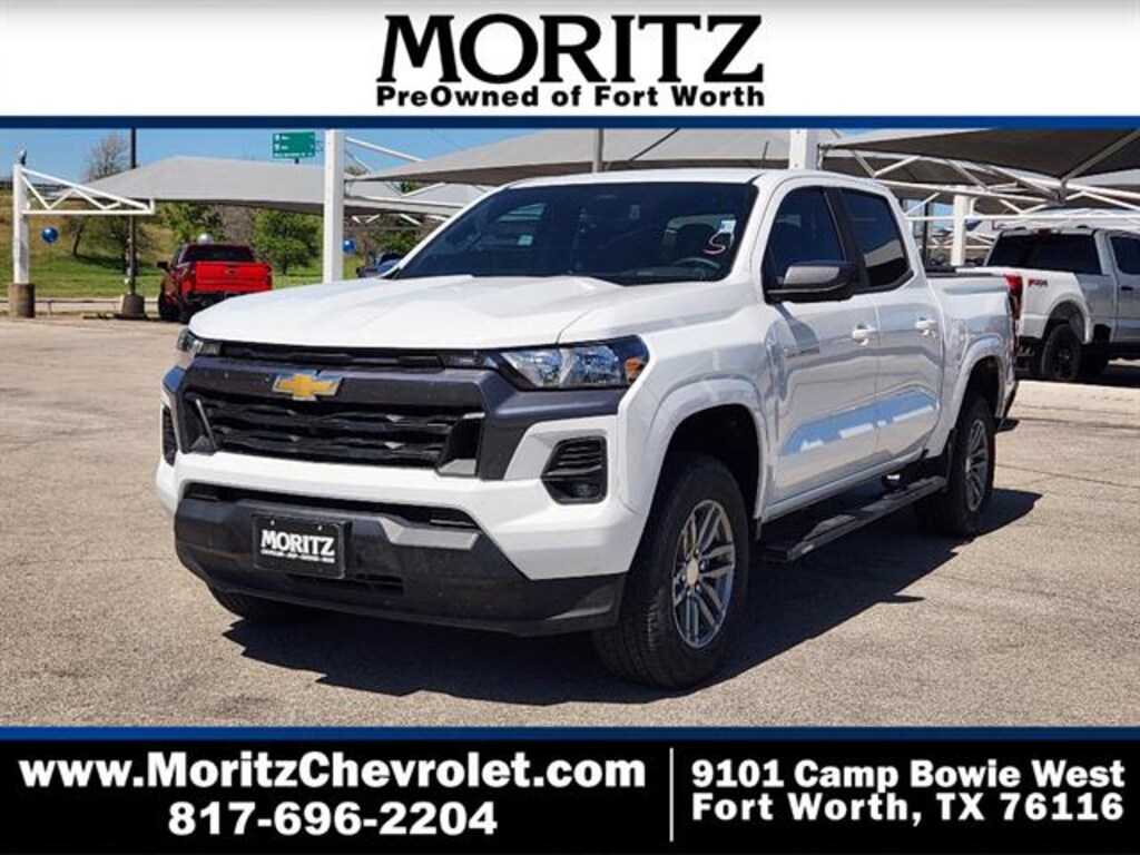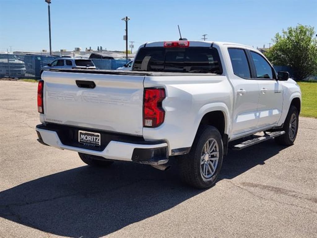 Certified. Summit White 2023 Chevrolet Colorado LT RWD 8-Speed Automatic 2.7L Turbo Bluetooth, Backup Camera, The Moritz Promise LIMITED LIFETIME POWERTRAIN PROTECTION PLAN See dealer for details, 8-Way Power Driver Seat Adjuster, Adaptive Cruise Control, Appearance Engine Cover, Apple CarPlay/Android Auto, Automatic Emergency Braking, Blind Zone Steering Assist, Brake assist, Chevy Safety Assist, Driver & Front Passenger Illuminated Visors, Dual-Zone Automatic Air Conditioning, Electronic Automatic Cruise Control, Electronic Stability Control, EZ-Lift & Lower Tailgate, Following Distance Indicator, Forward Collision Alert, Front LED Fog Lamps, Front Pedestrian & Bicyclist Braking, Front wheel independent suspension, HD Surround Vision, Heated Driver & Front Passenger Seats, Heated Power-Adjustable Outside Mirrors, Illuminated entry, Inside Rear-View Auto-Dimming Mirror, IntelliBeam Automatic High Beam On/Off, Lane Keep Assist w/Lane Departure Warning, LT Convenience Package, LT Convenience Package II, Manual Rear-Sliding Window, Navigation System, Power Driver Lumbar Control Seat Adjuster, Preferred Equipment Group 2LT, Rear Cross Traffic Braking, Rear Park Assist, Rear Pedestrian Alert, Rear step bumper, Rear-Window Electric Defogger, Remote Vehicle Starter System, Safety Package, Speed-sensing steering, Steering Wheel Mounted Audio Controls, Steering wheel mounted audio controls, StowFlex Tailgate Storage Compartment, Tailgate Keyed Cylinder Lock, Technology Package, Tilt & Telescoping Steering Column, Traction control, Wireless Charging, Wireless Phone Projection.Recent Arrival!Certification Program Details: 126-point inspection. Vehicle must be 10 model years old or newer, and the vehicle must have under 100,000 miles at the time of sale. Comes with 12 month/12,000 mile limited bumper to bumper warranty.