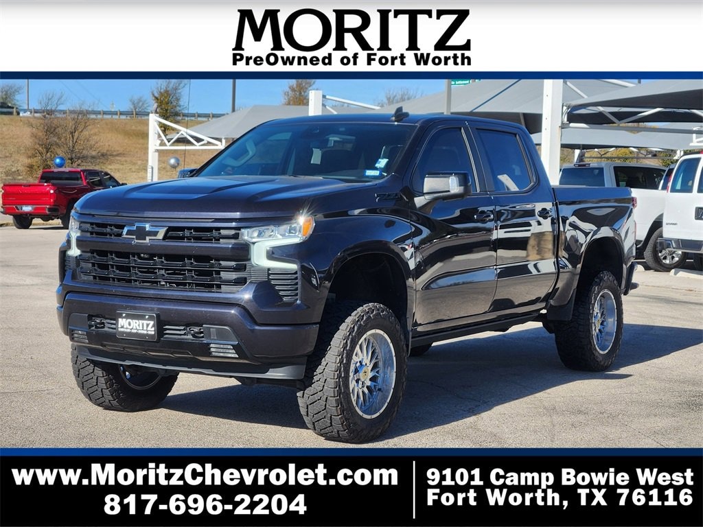 Dark Ash Metallic 2023 Chevrolet Silverado 1500 RST Lifted 4WD 10-Speed Automatic EcoTec3 5.3L V8 Bluetooth, Backup Camera, The Moritz Promise LIMITED LIFETIME POWERTRAIN PROTECTION PLAN See dealer for details, Custom Lift Kit, Custom Wheels, 10-Speed Automatic, 4WD, Black Leather, 10-Way Power Driver Seat w/Lumbar, 12.3 Multicolor Reconfigurable Digital Display, 120-Volt Bed Mounted Power Outlet, 120-Volt Instrument Panel Power Outlet, 6-Speaker Audio System, Adaptive Cruise Control, All-Star Edition, Alloy wheels, Apple CarPlay/Android Auto, Auto-Locking Rear Differential, Automatic temperature control, Black Name Plates (LPO), Bluetooth® For Phone, Brake assist, Chevrolet Connected Access Capable, Chevytec Spray-On Black Bedliner, Color-Keyed Carpeting Floor Covering, Compass, Convenience Package, Convenience Package II, Dark Essentials Package (LPO), Deep-Tinted Glass, Dual Exhaust w/Polished Outlets, Dual Rear USB Ports (Charge Only), Dual-Zone Automatic Climate Control, Electric Rear-Window Defogger, Electrical Steering Column Lock, Electronic Cruise Control, Electronic Stability Control, Electronic Transmission Range Selector Shifter, EZ Lift Power Lock & Release Tailgate, Floor Liners w/Front Removable Carpet Inserts, Floor Liners w/Rear Removable Carpet Inserts, Following Distance Indicator, Forward Collision Alert, Front anti-roll bar, Front Frame-Mounted Black Recovery Hooks, Front LED Fog Lamps, Front Pedestrian Braking, Front Rubberized Vinyl Floor Mats, Front wheel independent suspension, Fully automatic headlights, HD Rear Vision Camera, HD Surround Vision, Heated Driver & Front Outboard Passenger Seats, Heated Power-Adjustable Outside Mirrors, Heated Steering Wheel, Heavy-Duty Air Filter, High Gloss Black Mirror Caps, Hill Descent Control, Hitch Guidance, Hitch Guidance w/Hitch View, Illuminated entry, Inside Rear-View Mirror w/Tilt, Integrated Trailer Brake Controller, IntelliBeam Automatic High Beam On/Off, Keyless Open & Start, Lane Keep Assist w/Lane Departure Warning, Leather Package, Leather-Appointed Front Seat Trim, LED Cargo Area Lighting, Off-Road Suspension, OnStar & Chevrolet Connected Services Capable, Perimeter Lighting, Power Front Windows w/Driver Express Up/Down, Power Front Windows w/Passenger Express Down, Power Rear Windows w/Express Down, Power Sliding Rear Window w/Rear Defogger, Power Sunroof, Preferred Equipment Group 1SP, Premium Bose 7-Speaker Sound System, Protection Package, Rear 60/40 Folding Bench Seat (Folds Up), Rear Cross Traffic Alert-Braking, Rear Park Assist, Rear Pedestrian Alert, Rear Rubberized-Vinyl Floor Mats, Rear step bumper, Rear Wheelhouse Liners, Remote keyless entry, Remote Vehicle Starter System, RST Texas Edition Premium Package, Safety Package, SiriusXM w/360L, Speed-sensing steering, Standard Tailgate, Steering Wheel Audio Controls, Steering wheel mounted audio controls, Telescoping steering wheel, Texas Edition Badging, Texas Edition Plus, Theft Deterrent System (Unauthorized Entry), Traction control, Trailer Camera Provisions, Trailer Side Blind Zone Alert, Trailering App, Trailering Package, Universal Home Remote, Up-Level Rear Seat w/Storage Package, Wheels: 20 x 9 Painted Aluminum, Wi-Fi Hot Spot Capable, Wireless Phone Projection, Wrapped Steering Wheel, Z71 Off-Road Package.