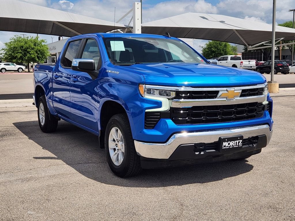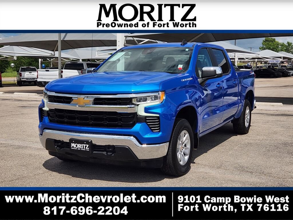 Certified. Riptide Blue 2025 Chevrolet Silverado 1500 LT LT1 4WD 10-Speed Automatic EcoTec3 5.3L V8 Bluetooth, Backup Camera, The Moritz Promise LIMITED LIFETIME POWERTRAIN PROTECTION PLAN See dealer for details, 10-Speed Automatic, 4WD, Black Cloth, 10-Way Power Driver Seat w/Lumbar, 12.3 Multicolor Reconfigurable Digital Display, 120-Volt Bed Mounted Power Outlet, 120-Volt Interior Power Outlet, All-Star Edition, Alloy wheels, Apple CarPlay/Android Auto, Auto-Locking Rear Differential, Automatic temperature control, Auxiliary External Transmission Oil Cooler, Bluetooth® For Phone, Brake assist, Chrome Mirror Caps, Color-Keyed Carpeting Floor Covering, Convenience Package, Deep-Tinted Glass, Dual Rear USB Ports (Charge Only), Dual-Zone Automatic Climate Control, Electric Rear-Window Defogger, Electronic Cruise Control, Electronic Stability Control, External Engine Oil Cooler, EZ Lift Power Lock & Release Tailgate, Following Distance Indicator, Forward Collision Alert, Front Frame-Mounted Black Recovery Hooks, Front Pedestrian Braking, Front Rubberized Vinyl Floor Mats, Fully automatic headlights, HD Rear Vision Camera, Heated Driver & Front Outboard Passenger Seats, Heated Power-Adjustable Outside Mirrors, Heated Steering Wheel, Hitch Guidance, Illuminated entry, Inside Rear-View Mirror w/Tilt, Integrated Trailer Brake Controller, Keyless Open & Start, LED Cargo Area Lighting, Manual Tilt/Telescoping Steering Column, OnStar Services Capable, Power Front Windows w/Driver Express Up/Down, Power Front Windows w/Passenger Express Down, Power Rear Windows w/Express Down, Preferred Equipment Group 1LT, Rear 60/40 Folding Bench Seat (Folds Up), Rear Rubberized-Vinyl Floor Mats, Remote Start Package, Remote Vehicle Starter System, SiriusXM w/360L Trial Subscription, Speed-sensing steering, Standard Tailgate, Steering Wheel Audio Controls, Steering wheel mounted audio controls, Teen Driver, Telescoping steering wheel, Theft Deterrent System (Unauthorized Entry), Tire Pressure Monitoring System, Traction control, Trailering Package, Wi-Fi Hot Spot Capable, Wrapped Steering Wheel.