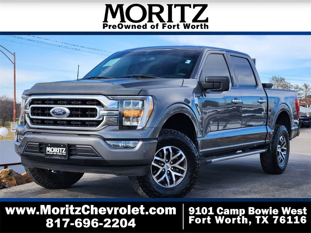 Certified. Gray 2021 Ford F-150 XLT 4WD 10-Speed Automatic 5.0L V8 Bluetooth, Backup Camera, The Moritz Promise LIMITED LIFETIME POWERTRAIN PROTECTION PLAN See dealer for details, 4WD, 10-Way Power Driver & Passenger Seats, 2-Bar Style Grille w/Chrome 2 Minor Bars, 4x4 FX4 Off-Road Bodyside Decal, 8 Productivity Screen in Instrument Cluster, Auto-Dimming Rear-View Mirror, Brake assist, Chrome Door & Tailgate Handles w/Body-Color Bezel, Chrome Single-Tip Exhaust, Chrome Step Bars, Class IV Trailer Hitch Receiver, Dual Zone Automatic Temperature Control, Electronic Stability Control, Equipment Group 302A High, Extended Range 36 Gallon Fuel Tank, Exterior Parking Camera Rear, Front anti-roll bar, Front wheel independent suspension, Fully automatic headlights, FX4 Off-Road Package, Heated Front Seats, Hill Descent Control, Illuminated entry, Integrated Trailer Brake Controller, Intelligent Access w/Push Button Start, Leather-Wrapped Steering Wheel, LED Box Lighting w/Zone Lighting, LED Reflector Headlamps, LED Sideview Mirror Spotlights, Monotube Rear Shocks, Off-Road Tuned Front Shock Absorbers, Onboard 400W Outlet, Power Glass Heated Sideview Mirrors, Pro Trailer Backup Assist, Radio: AM/FM SiriusXM w/360L, Rear step bumper, Rear Under-Seat Storage, Remote Start System w/Remote Tailgate Release, Rock Crawl Mode, SecuriCode Drivers Side Keyless-Entry Keypad, Security system, Speed-sensing steering, Steering wheel mounted audio controls, SYNC 4 w/Enhanced Voice Recognition, Telescoping steering wheel, Traction control, Trailer Tow Package, Tray Style Floor Liner, Wheels: 18 Chrome-Like PVD, XLT Chrome Appearance Package.