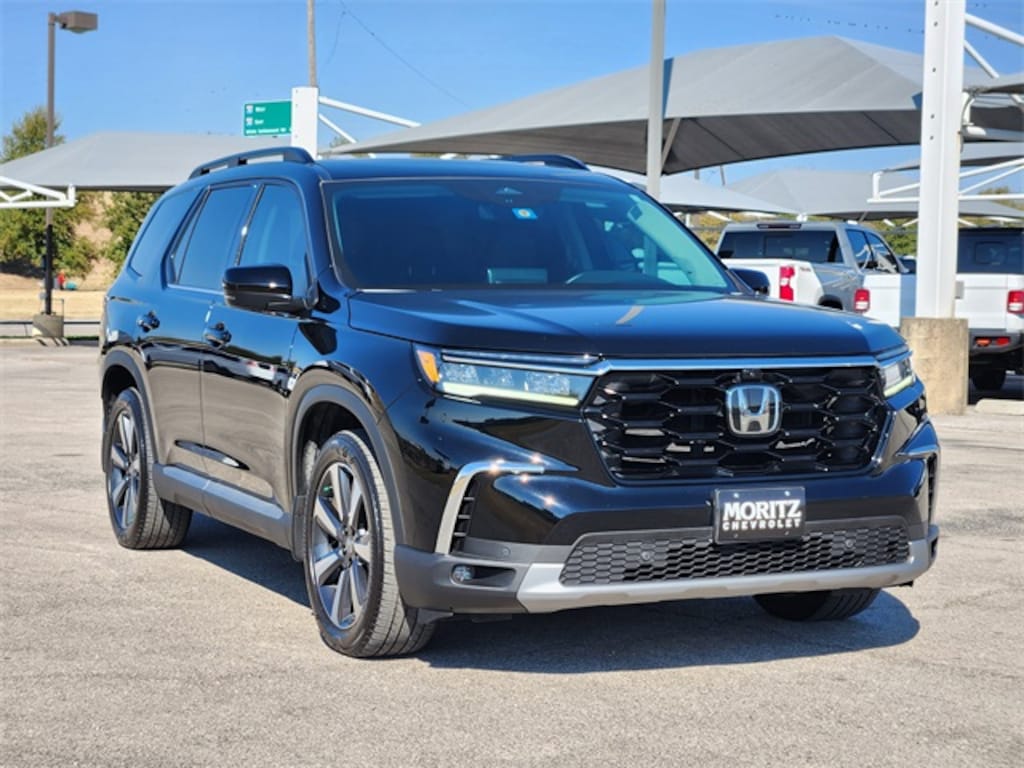 Black 2023 Honda Pilot Elite AWD 10-Speed Automatic 3.5L V6 DOHC 24V Bluetooth, Backup Camera, The Moritz Promise LIMITED LIFETIME POWERTRAIN PROTECTION PLAN See dealer for details, AWD, 12 Speakers, Adaptive Cruise Control: Adaptive Cruise Control (ACC) with Low-Speed Follow, Apple CarPlay/Android Auto, Auto-dimming Rear-View mirror, Automatic temperature control, Blind Spot Information (BSI) System warning, Bose Premium Sound System, Brake assist, Electronic Stability Control, Four wheel independent suspension, Front anti-roll bar, Fully automatic headlights, Garage door transmitter: HomeLink, Heads-Up Display, Heated & Ventilated Front Bucket Seats, Heated steering wheel, Illuminated entry, Lane departure: Lane Keeping Assist System (LKAS) active, Memory seat, Navigation system: Honda Satellite-Linked Navigation System, Perforated Leather Seat Trim, Power Liftgate, Power moonroof, Rear air conditioning, Rear anti-roll bar, Reclining 3rd row seat, Remote keyless entry, Security system, Speed-sensing steering, Spoiler, Steering wheel mounted audio controls, Telescoping steering wheel, Traction control.