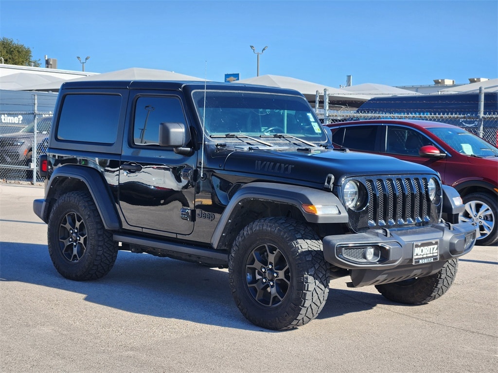 Certified. Black Clearcoat 2022 Jeep Wrangler Willys 4WD 8-Speed Automatic 3.6L V6 24V VVT Bluetooth, Backup Camera, The Moritz Promise LIMITED LIFETIME POWERTRAIN PROTECTION PLAN See dealer for details, 4-Wheel Drive Swing Gate Decal, 7.0" Touchscreen Display, 97 MPH Vehicle Max Speed Calibration, Air Conditioning, Anti-Spin Differential Rear Axle, Apple CarPlay, Automatic Headlamps, Auxiliary Battery, Black 3-Piece Hard Top, Black Grille, Black Trail Rated Badge, Brake assist, Bridgestone Brand Tires, Cloth Low-Back Bucket Seats, Deep Tint Sunscreen Windows, Electronic Stability Control, Engine Oil Cooler, Freedom Panel Storage Bag, Front 1-Touch Down Power Windows, Front anti-roll bar, Front LED Fog Lamps, Global Telematics Box Module (TBM), Google Android Auto, GPS Antenna Input, Integrated Center Stack Radio, Integrated Voice Command w/Bluetooth, Leather Wrapped Steering Wheel, LED Headlamp & Fog Lamp Group, LED Premium Reflector Headlamps, Matte Black Jeep Badge, Mold In Color Bumper w/Gloss Black, MOPAR All-Weather Floor Mats, No Soft Top, ParkView Rear Back-Up Camera, Power Heated Mirrors, Quick Order Package 23W Willys, Quick Order Package 24W Willys, R1234YF A/C Refrigerant, Radio: Uconnect 4 w/7" Display, Rear anti-roll bar, Rear Window Defroster, Rear Window Wiper/Washer, Remote Keyless Entry, Security Alarm, SiriusXM Guardian-Included Trial (B), Speed Sensitive Power Locks, Start-Stop Dual Battery System, Steering wheel mounted audio controls, Sun Visors w/Illuminated Vanity Mirrors, Telescoping steering wheel, Traction control, USB Host Flip, Wheels: 17" x 7.5" Moab Black Aluminum, Willys, Willys Hood Decal.