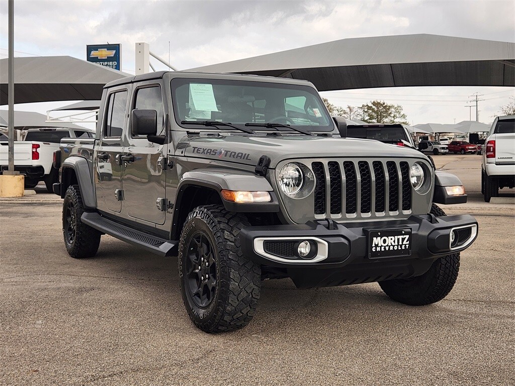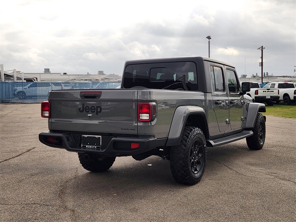 Certified. Sting-Gray Clearcoat 2023 Jeep Gladiator Texas Trail 4WD 8-Speed Automatic 3.6L V6 24V VVT Bluetooth, Backup Camera, The Moritz Promise LIMITED LIFETIME POWERTRAIN PROTECTION PLAN See dealer for details, #1 Seat Foam Cushion, 240 Amp Alternator, 97 MPH Vehicle Max Speed Calibration, Air Conditioning w/Auto Temperature Control, Apple CarPlay, Apple CarPlay/Android Auto, Automatic Headlamps, Black 3-Piece Hard Top, Body Color Fender Flares (2-Piece), Class IV Receiver Hitch, Cloth Low-Back Bucket Seats, Cluster 7.0" TFT Color Display, Cold Weather Group, Convenience Group, Daytime Running Lamp System, Deep Tint Sunscreen Windows, Electronic Stability Control, For More Info, Call 800-643-2112, Freedom Panel Storage Bag, Front 1-Touch Down Power Windows, Front anti-roll bar, Front Door Locks 2-Door Passive Entry, Google Android Auto, GPS Antenna Input, Heated Front Seats, Heated Steering Wheel, Heavy-Duty Engine Cooling, Integrated Center Stack Radio, Integrated Voice Command w/Bluetooth, Leather Trimmed Bucket Seats (YL), Normal Duty Plus Suspension, ParkView Rear Back-Up Camera, Power Heated Mirrors, Power Tailgate Lock, Premium Wrapped Steering Wheel, Quick Order Package 24J Texas Trail, Rear Armrest w/Cupholder Seat, Rear Sliding Window, Rear Window Defroster, Remote Keyless Entry, Security Alarm, Side Steps, SiriusXM Radio Service, SiriusXM Satellite Radio, Speed Sensitive Power Locks, Steering wheel mounted audio controls, Sun Visors w/Illuminated Vanity Mirrors, Technology Group, Telescoping steering wheel, Texas Trail, Texas Trail Tailgate & Hood Decals, Traction control, Trailer Hitch Zoom, Trailer Tow Package, Universal Garage Door Opener, Wheels: 17" x 7.5" Black Aluminum.