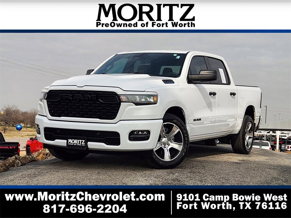 Certified. Bright White Clearcoat 2025 Ram 1500 Tradesman RWD 8-Speed Automatic 3.6L V6 24V VVT Bluetooth, Backup Camera, The Moritz Promise LIMITED LIFETIME POWERTRAIN PROTECTION PLAN See dealer for details, 2nd Row In Floor Storage Bins, 3 Rear Seat Head Restraints, 4 Way Front Headrests, 40/20/40 Split Bench Seat, Black Exterior Mirrors, Black Interior Accents, Body Color Front Bumper, Body Color Rear Bumper w/Step Pads, Brake assist, Bridgestone Brand Tires, Cloth Bench Seat, Electronic Stability Control, Exterior Mirrors w/Heating Element, Front & Rear Floor Mats, Front anti-roll bar, Front Center Seat Cushion Storage, Front LED Fog Lamps, Front Seat Back Map Pockets, Front wheel independent suspension, Fully automatic headlights, Grille Surround 1 Body Color Texture 1 Black, Heated door mirrors, Illuminated entry, Manual Adjust 4-Way Driver Seat, Manual Adjust 4-Way Front Passenger Seat, Panic alarm, ParkView Rear Back-Up Camera, Quick Order Package 23A Tradesman, Rear 60/40 Folding Seat, Rear Power Sliding Window, Rear step bumper, Remote keyless entry, Seat Parts Module II, SiriusXM Satellite Radio, Sport Appearance Package, Telescoping steering wheel, Traction control, Tradesman Level 1 Equipment Group, Wheels: 20 x 9.0 Aluminum Polished Painted.